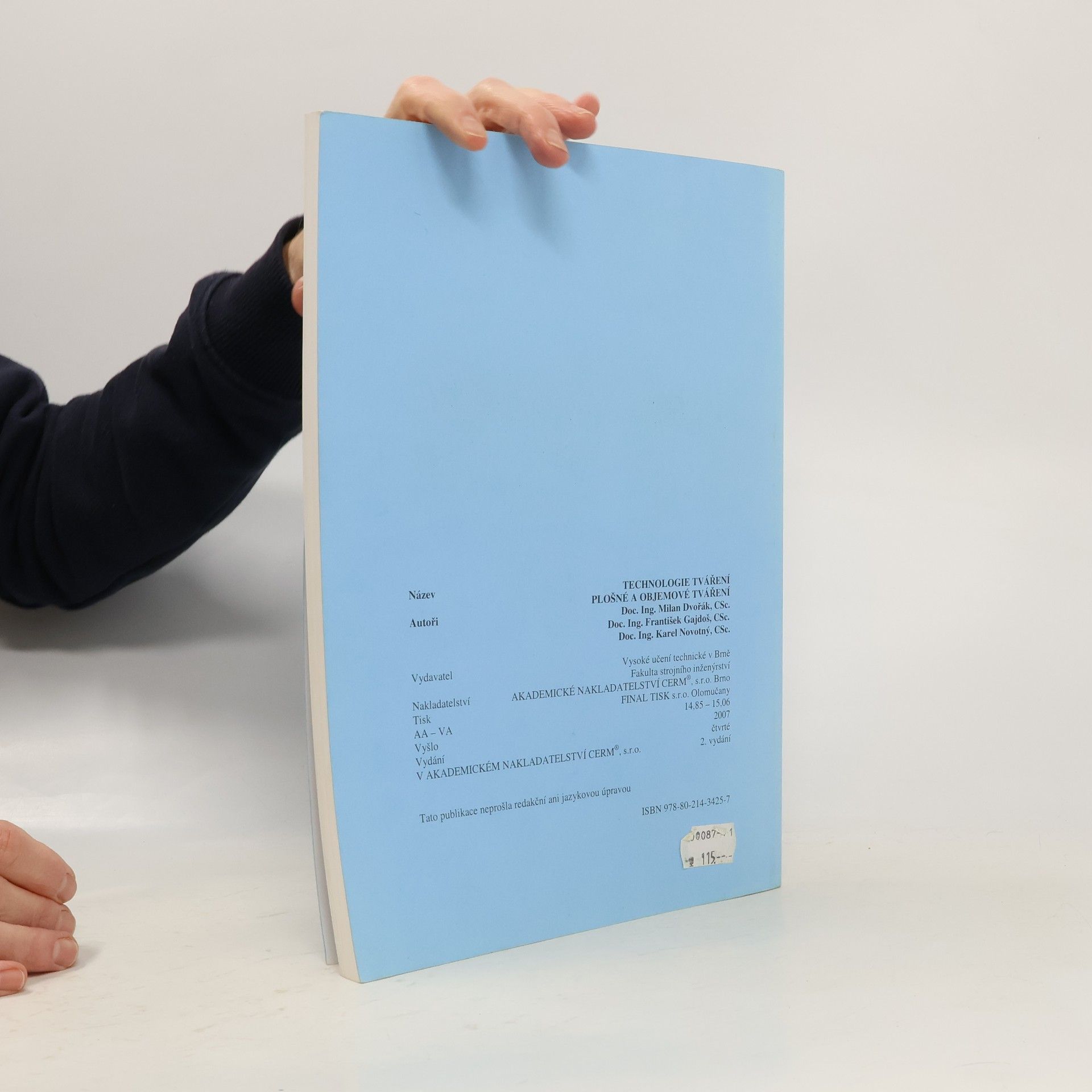 Technologie tváření, Milan Dvořák, František Gajdoš, Karel Novotný, Vysoké učení technické v Brně Fakulta strojního inženýrství