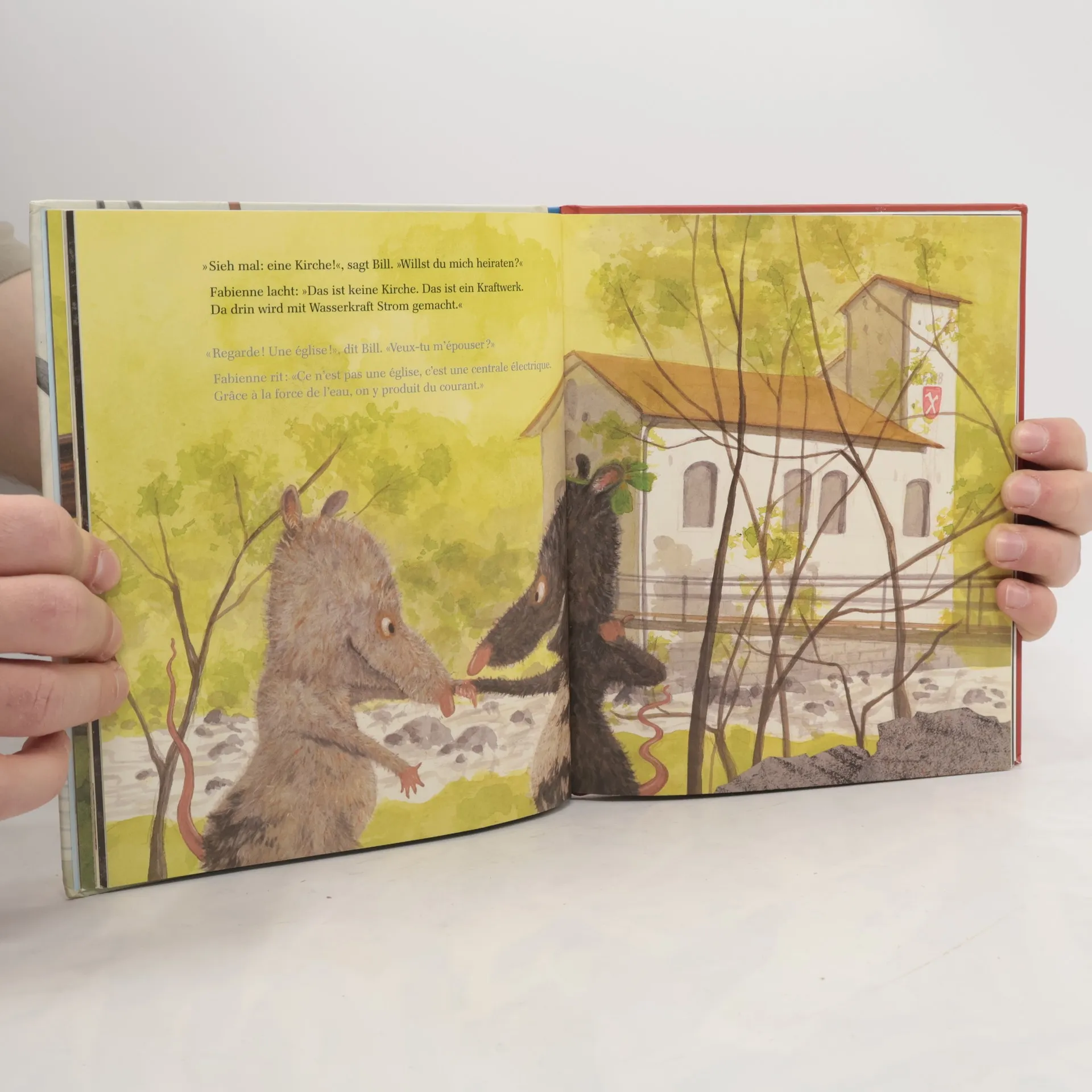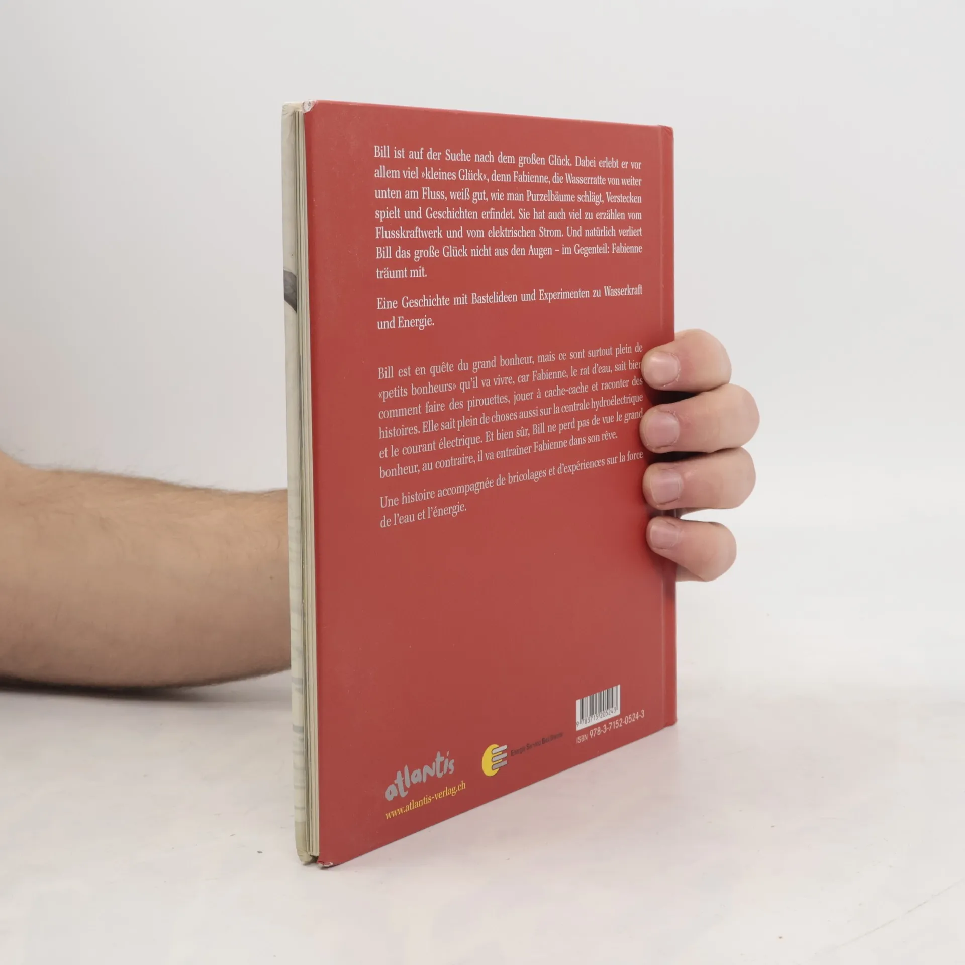Bill ist auf der Suche nach dem großen Glück. Dabei erlebt er vor allem viel »kleines Glück«, denn Fabienne, die Wasserratte von weiter unten am Fluss, weiß gut, wie man Purzelbäume schlägt, Verstecken spielt und Geschichten erfindet. Sie hat auch viel zu erzählen vom Flusskraftwerk und vom elektrischen Strom. Und natürlich verliert Bill das große Glück nicht aus den Augen? Im Gegenteil: Fabienne träumt mit. Eine Geschichte mit Bastelideen und Experimenten zu Wasserkraft und Energie. Bill est en quête du grand bonheur, mais ce sont surtout plein de »petits bonheurs« qu’il va vivre, car Fabienne, le rat d’eau, sait bien comment faire des pirouettes, jouer à cache-cache et raconter des histoires. Elle sait plein de choses aussi sur la centrale hydroélectrique et le courant électrique. Et bien sûr, Bill ne perd pas de vue le grandbonheur, au contraire, il va entraîner Fabienne dans son rêve. Une histoire accompagnée de bricolages et d’expériences sur la force de l’eau et l’énergie. Das Thema Energie wird umfassend erläutert: von Wasserkraft bis Energie für den Körper; mit Kraftstängel-Rezept für Kinder. Das renovierte Kleinwasserkraftwerk Taubenloch feiert den neuen Taubenlochstrom. Zum Festanlass hier entlang!
