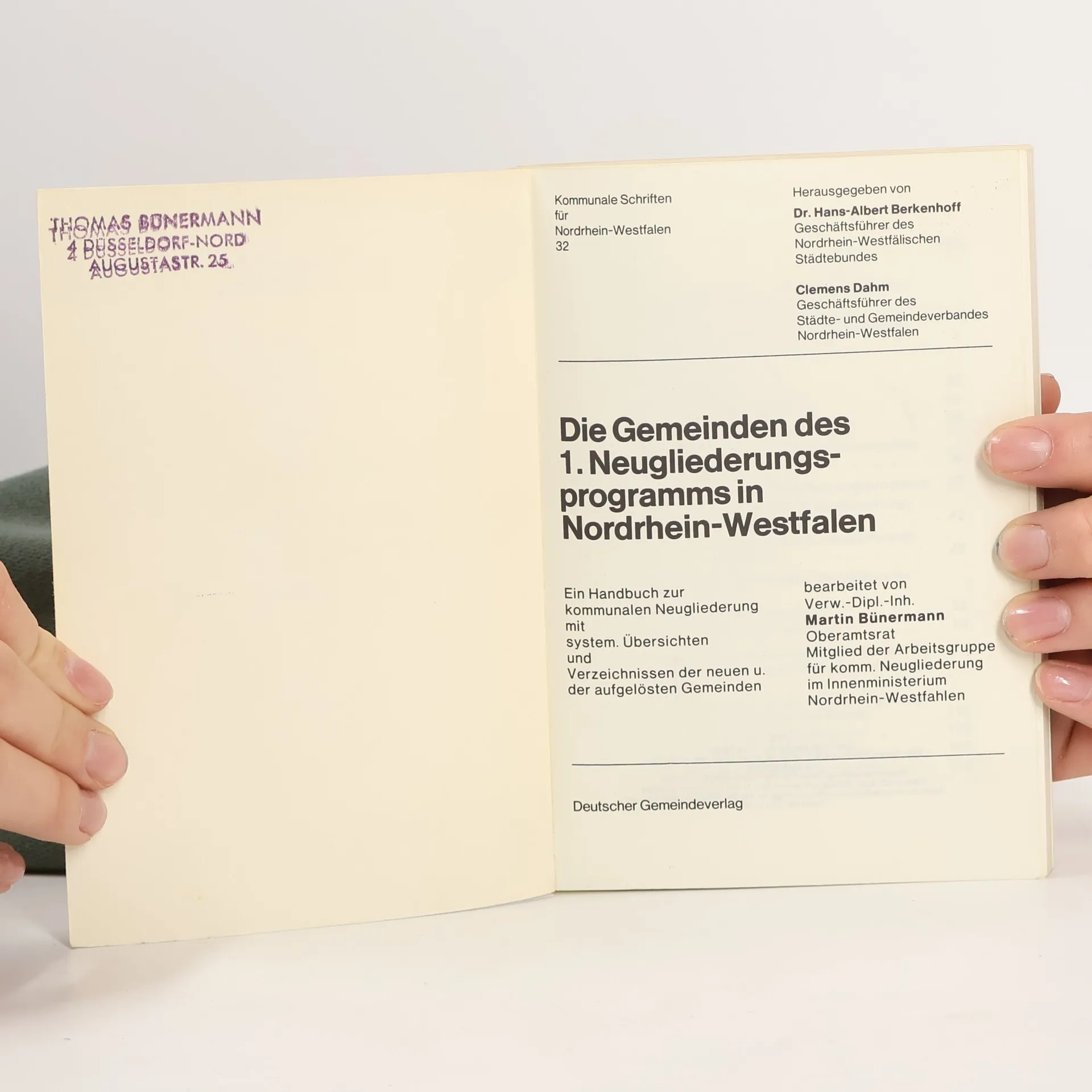 Die Gemeinden des 1. Neugliederung Programms in Nordrhein-Westfalen, Hans Albert Berkenhoff, Clemens Dahm