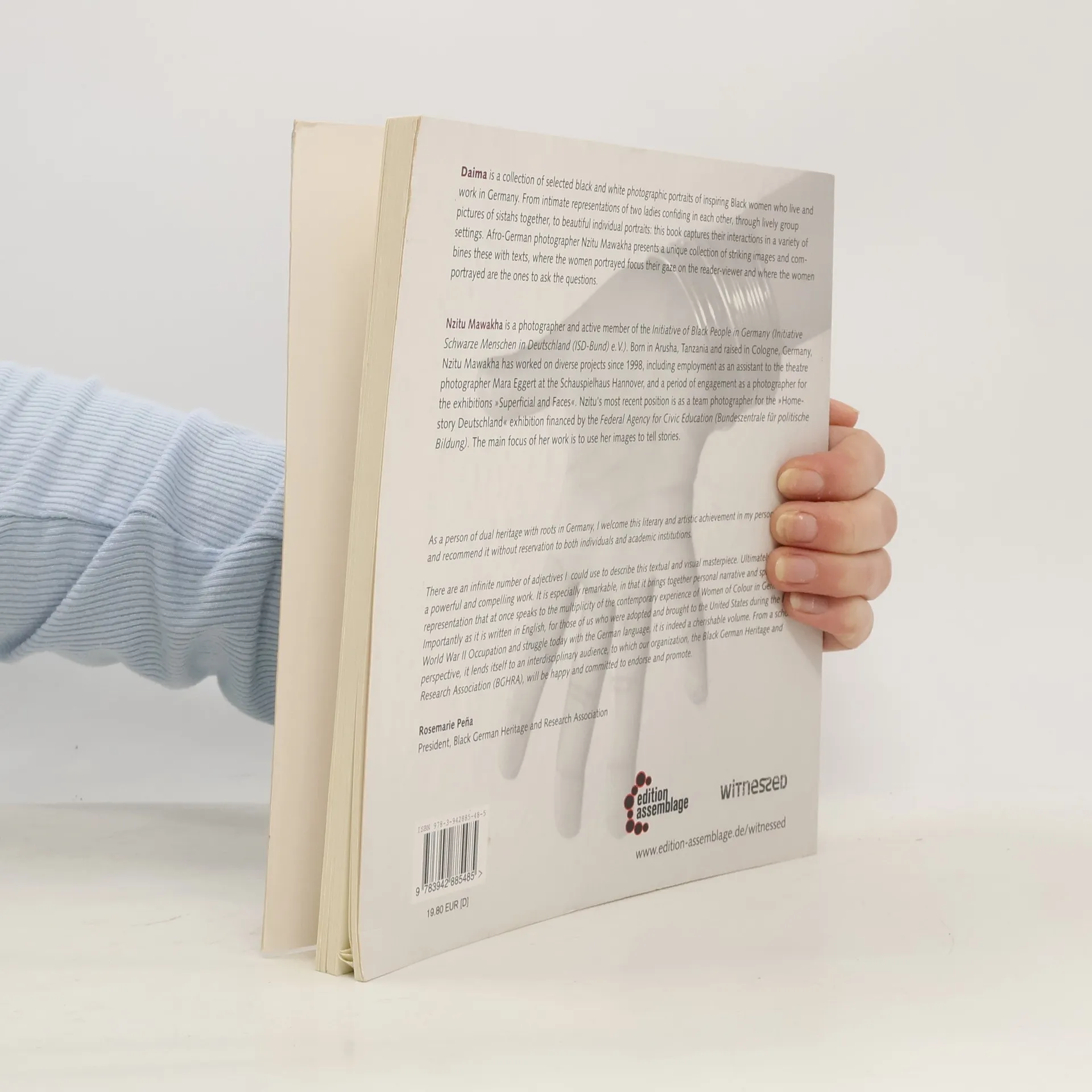 „Daima“ is a collection of selected black and white photographic portraits of inspiring Black women who live and work in Germany. From intimate representations of two ladies confiding in each other, through lively group pictures of sistahs together, to beautiful individual portraits: this book captures their interactions in a variety of settings. Afro-German photographer Nzitu Mawakha presents a unique collection of striking images and combines these with texts, where the women portrayed focus their gaze on the reader-viewer and where the women portrayed are the ones to ask the questions.