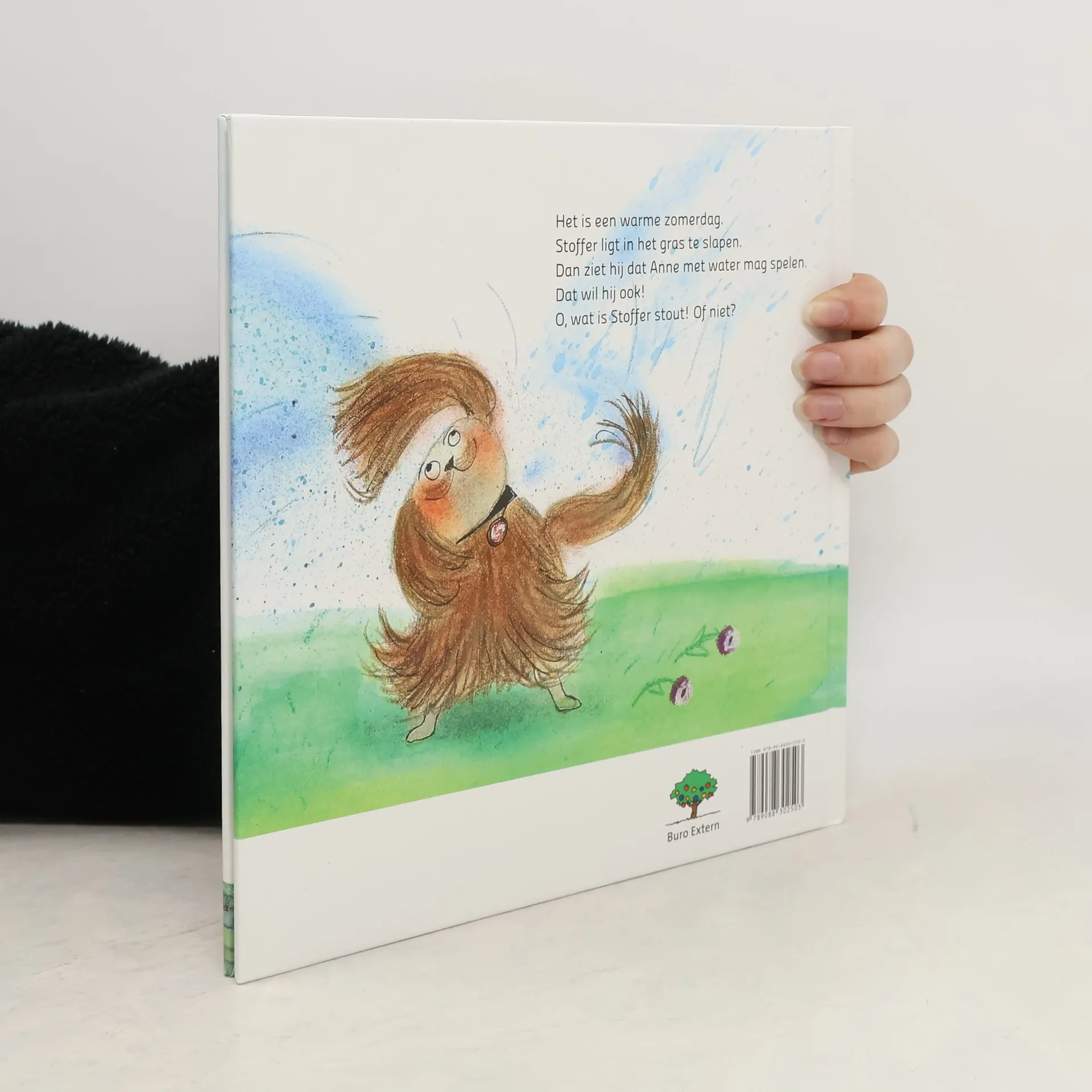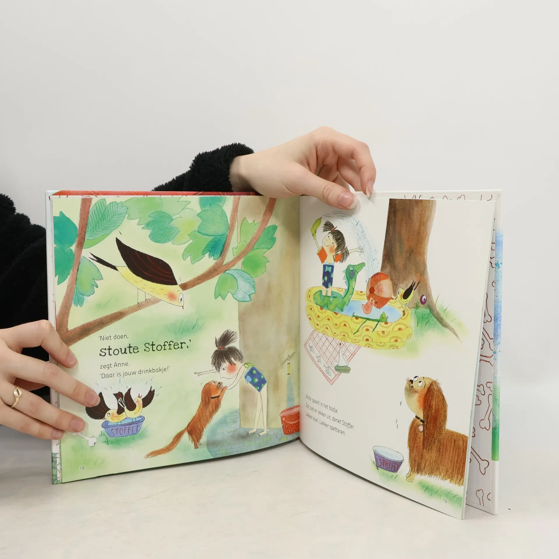 Op een warme zomerdag wil Anne de plantjes in de tuin water geven. Maar Stoffer de hond is veel te wild met de tuinslang, de gieter, de emmer en het badje. Vierkant prentenboek met kleurrijke illustraties. Vanaf ca. 4 jaar.
