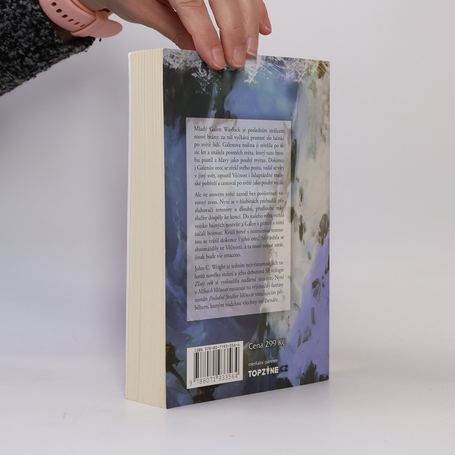 Mladý Galen Waylock je posledním strážcem snové brány, za níž vyčkává prastaré zlo lačnící po světě lidí. Galenova rodina ji střežila po tisíc let a snášela posměch světa, který tuto hrozbu pustil z hlavy coby pouhý mýtus. Dokonce i Galenův otec se zřekl svého postu. Vzdal se víry v jiný svět, opustil Věčnost i liduprázdné mainské pobřeží a cestoval po světě jako voják. Ale ve snovém světě zazněl bez povšimnutí varovný zvon. Nyní se v hlubinách probudili přisluhovači Temnoty a dlouhé, předlouhé roky služby dospěly ke konci. Do našeho světa vtrhlo vojsko bájných nestvůr a Galen s přáteli s nimi začali bojovat. Kvůli bitvě s nesmírnou temnotou se vrátil dokonce i jeho otec. Síly světla se shromáždily ve Věčnosti, a ta musí nápor ustát, jinak bude vše ztraceno. John C. Wright je jedním nejvýznamnějších talentů nového století a jeho debutová SF trilogie Zlatý věk si vysloužila nadšené recenze. Nyní v Mlhách Věčnosti navazuje na výjimečný fantasy román Poslední Strážce Věčnosti, vzrušujícím příběhem, který nadchne všechny své čtenáře.