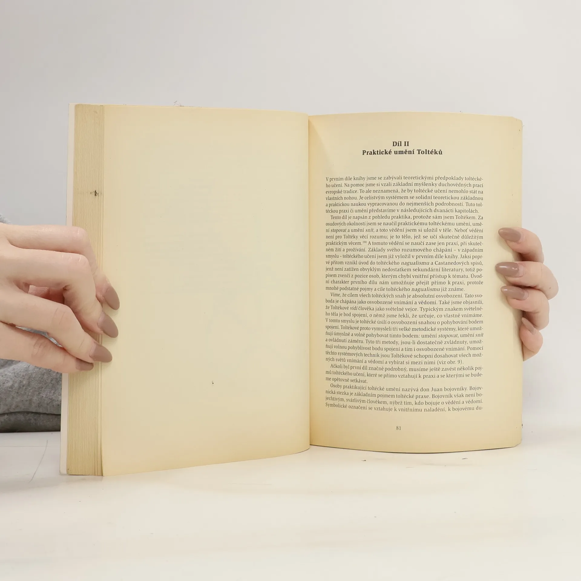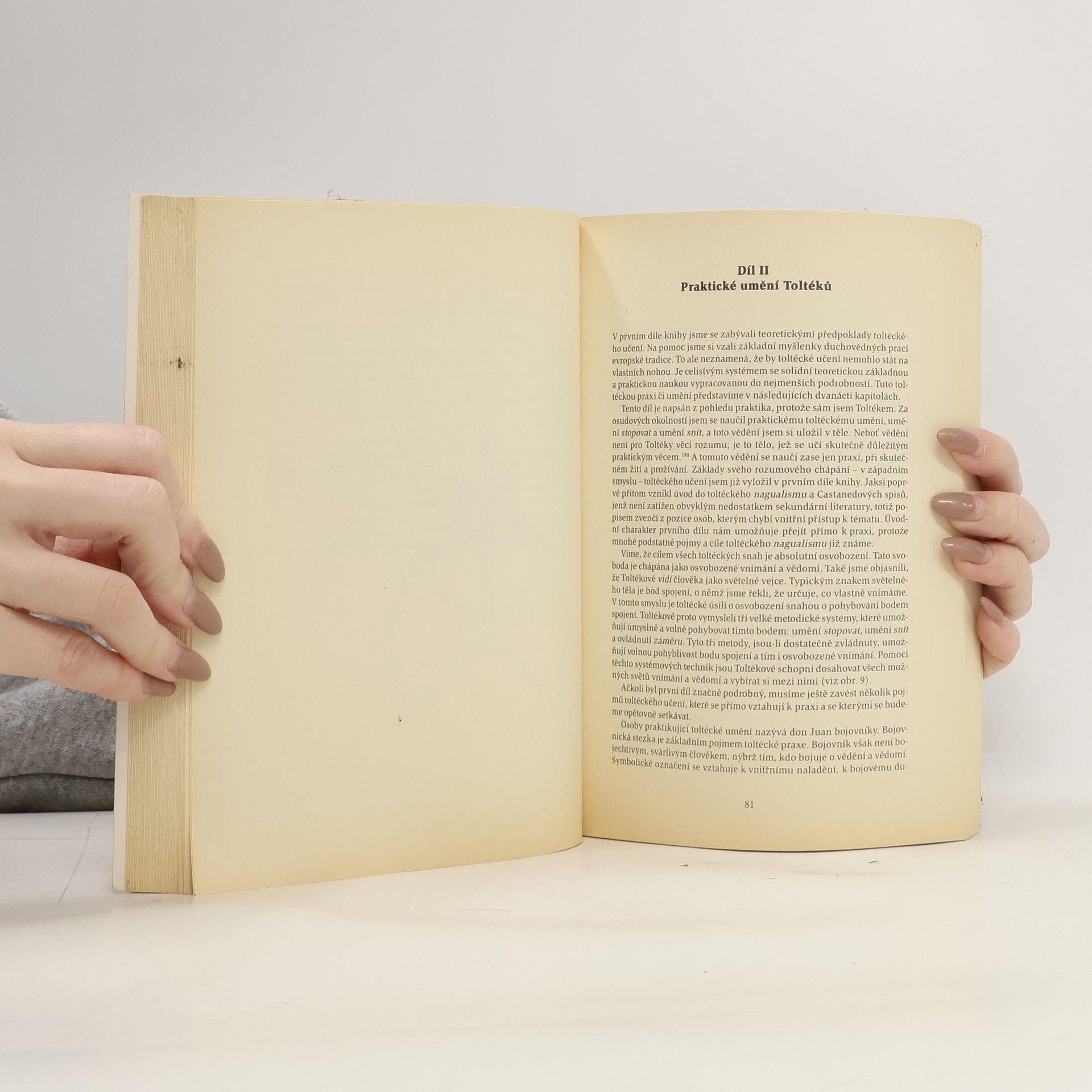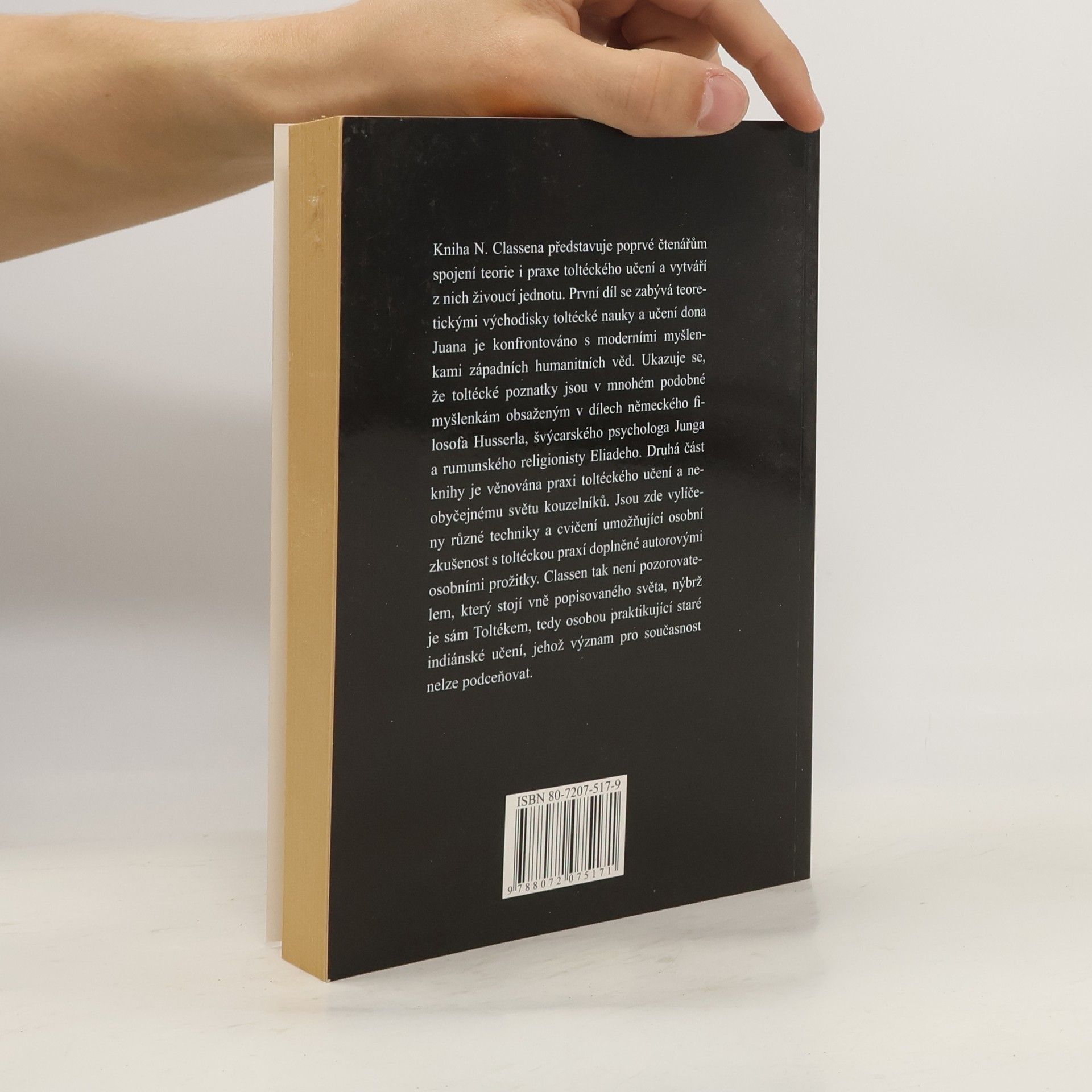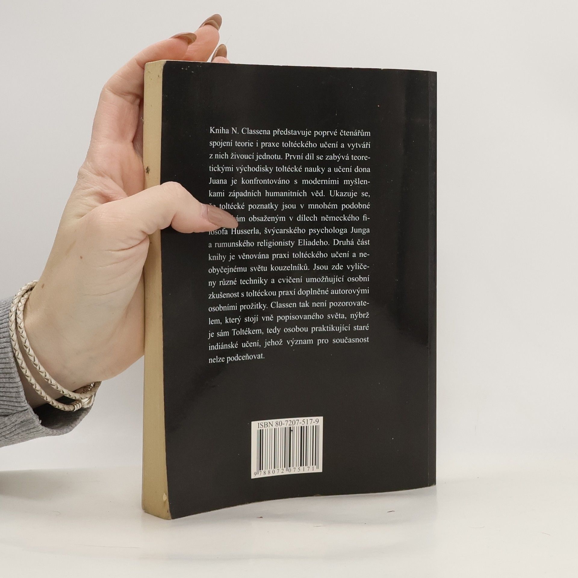 Podtitul: Carlos Castaneda a filosofie dona Juana Kniha N. Classena představuje poprvé čtenářům spojení teorie i praxe toltéckého učení a vytváří z nich živoucí jednotu. První díl se zabývá teoretickými východisky toltécké nauky a učení dona Juana je konfrontováno s moderními myšlenkami západních humanitních věd. Ukazuje se, že toltécké poznatky jsou v mnohém podobné myšlenkám obsaženým v dílech německého filosofa Husserla, švýcarského psychologa Junga a rumunského religionisty Eliadeho. Druhá část knihy je věnována praxi toltéckého učení a neobyčejnému světu kouzelníků. Jsou zde vylíčeny různé techniky a cvičení umožňující osobní zkušenost s toltéckou praxí doplněné autorovými osobními prožitky. Claßen tedy není pozorovatelem, který stojí vně popisovaného světa, nýbrž je sám Toltékem, tedy osobou praktikující staré indiánské učení, jehož význam pro současnost nelze podceňovat.