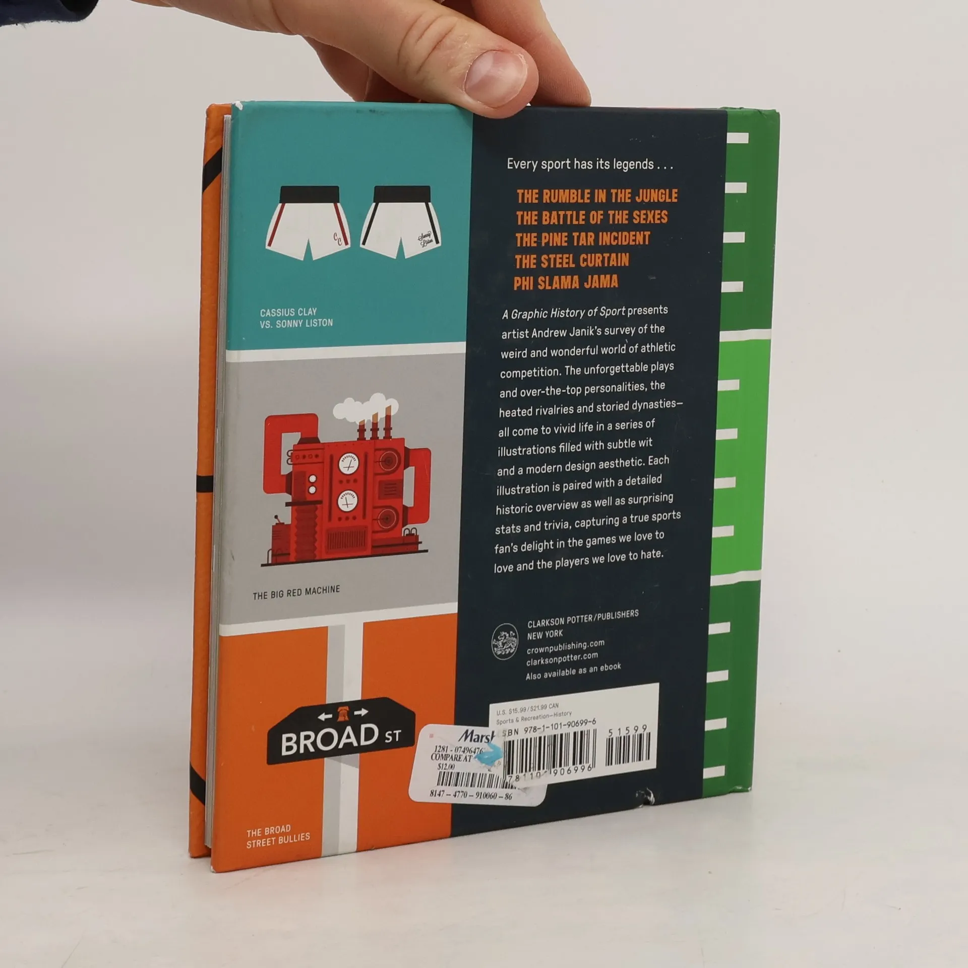 Every sport has its legends . . .THE RUMBLE IN THE JUNGLETHE BATTLE OF THE SEXESTHE PINE TAR INCIDENTTHE STEEL CURTAINPHI SLAMA JAMAA Graphic History of Sport presents artist Andrew Janik’s survey of the weird and wonderful world of athletic competition. The unforgettable plays and over-the-top personalities, the heated rivalries and storied dynasties— all come to vivid life in a series of illustrations filled with subtle wit and a modern design aesthetic. Each illustration is paired with a detailed historic overview as well as surprising stats and trivia, capturing a true sports fan’s delight in the games we love to love and the players we love to hate.