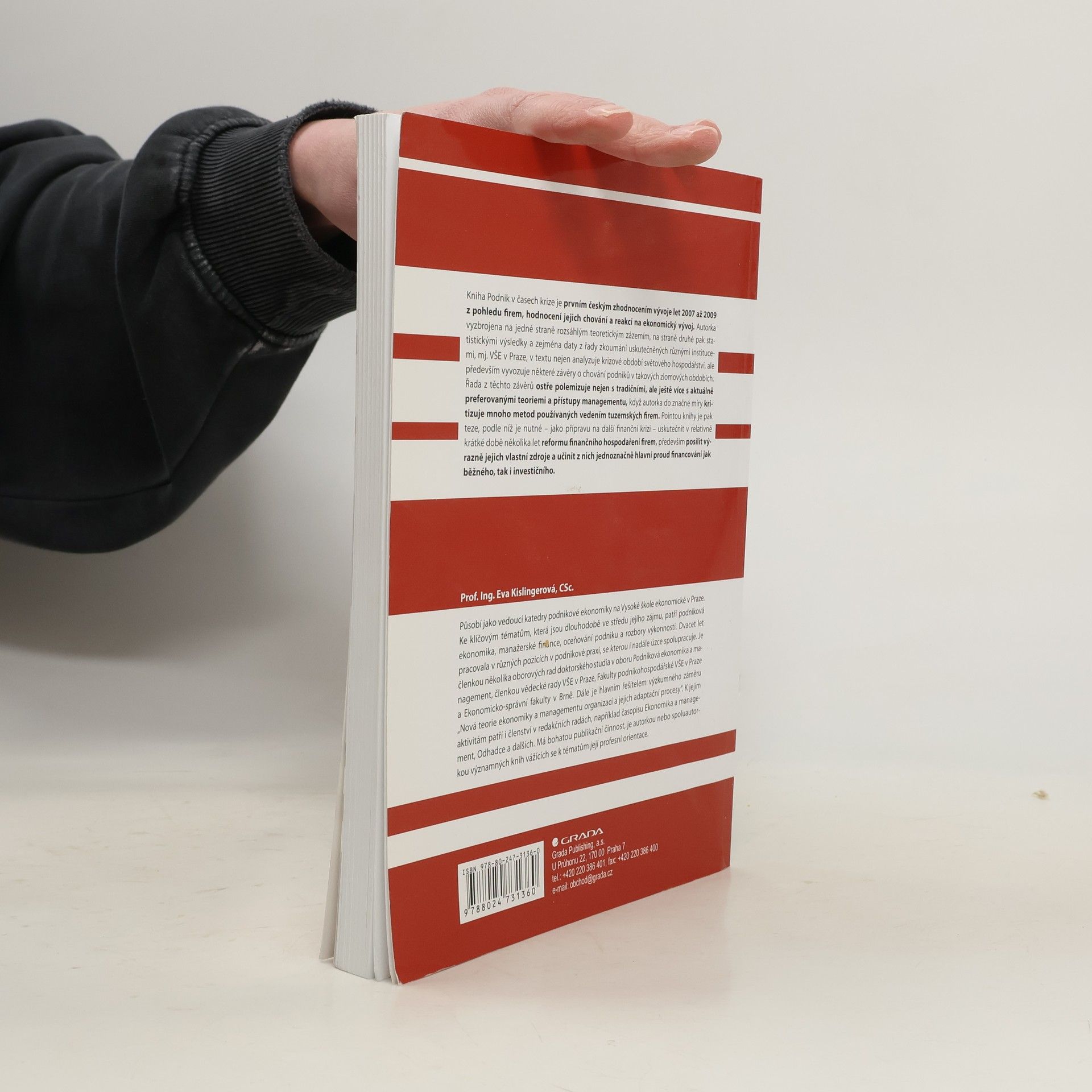 Kniha Podnik v časech krize je prvním českým zhodnocením vývoje let 2007 až 2009 z pohledu firem, hodnocení jejich chování a reakcí na ekonomický vývoj. Autorka vyzbrojena na jedné straně rozsáhlým teoretickým zázemím, na straně druhé pak statistickými výsledky a zejména daty z řady zkoumání uskutečněných různými institucemi, mj. VŠE v Praze, v textu nejen analyzuje krizové období světového hospodářství, ale především vyvozuje některé závěry o chování podniků v takových zlomových obdobích. Řada z těchto závěrů ostře polemizuje nejen s tradičními, ale ještě více s aktuálně preferovanými teoriemi a přístupy managementu, když autorka do značné míry kritizuje mnoho metod používaných vedením tuzemských firem. Pointou knihy je pak teze, podle níž je nutné - jako přípravu na další finanční krizi - uskutečnit v relativně krátké době několika let reformu finančního hospodaření firem, především pak posílit výrazně jejich vlastní zdroje a učinit z nich jednoznačně hlavní proud financování jak běžného, tak i investičního.