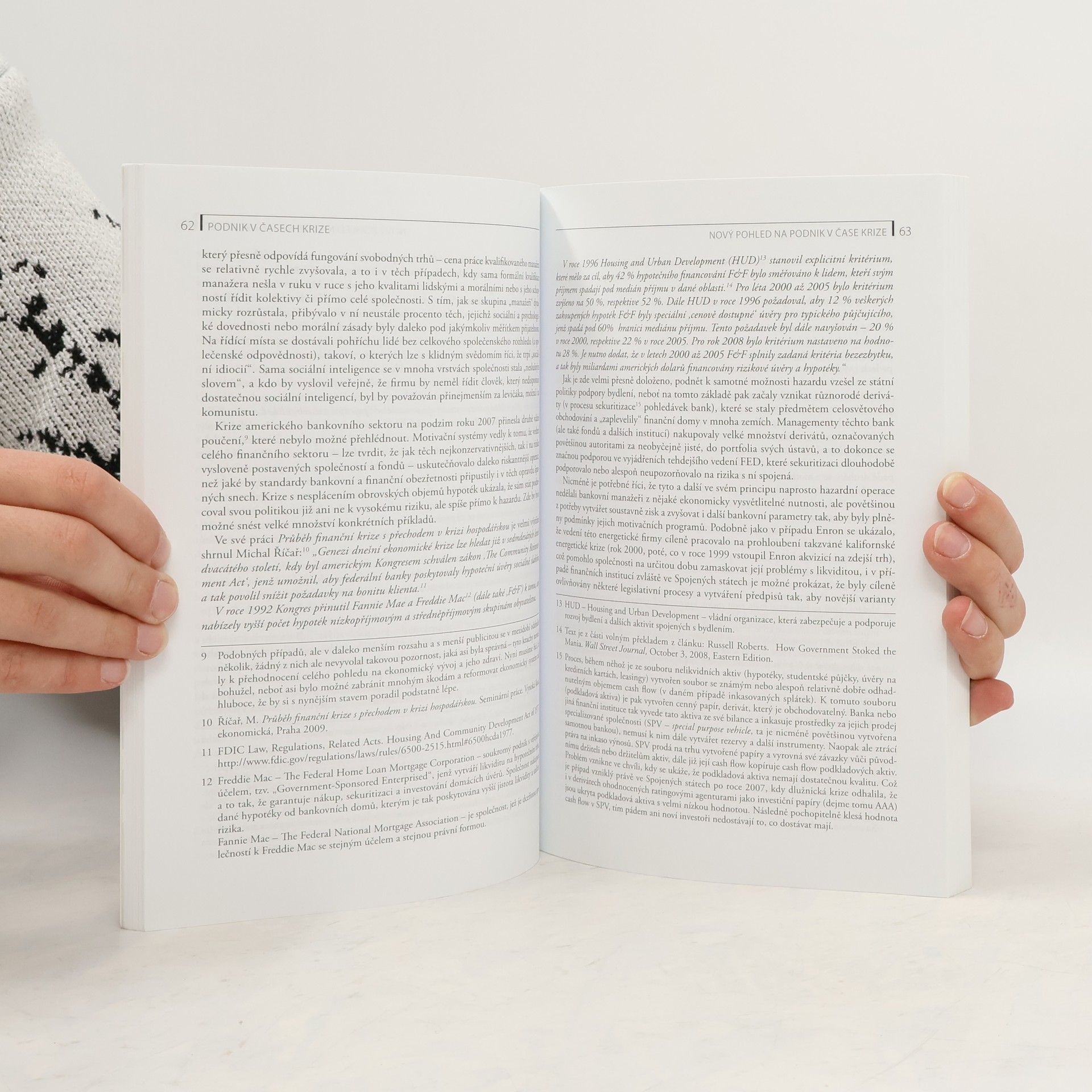 Kniha Podnik v časech krize je prvním českým zhodnocením vývoje let 2007 až 2009 z pohledu firem, hodnocení jejich chování a reakcí na ekonomický vývoj. Autorka vyzbrojena na jedné straně rozsáhlým teoretickým zázemím, na straně druhé pak statistickými výsledky a zejména daty z řady zkoumání uskutečněných různými institucemi, mj. VŠE v Praze, v textu nejen analyzuje krizové období světového hospodářství, ale především vyvozuje některé závěry o chování podniků v takových zlomových obdobích. Řada z těchto závěrů ostře polemizuje nejen s tradičními, ale ještě více s aktuálně preferovanými teoriemi a přístupy managementu, když autorka do značné míry kritizuje mnoho metod používaných vedením tuzemských firem. Pointou knihy je pak teze, podle níž je nutné - jako přípravu na další finanční krizi - uskutečnit v relativně krátké době několika let reformu finančního hospodaření firem, především pak posílit výrazně jejich vlastní zdroje a učinit z nich jednoznačně hlavní proud financování jak běžného, tak i investičního.