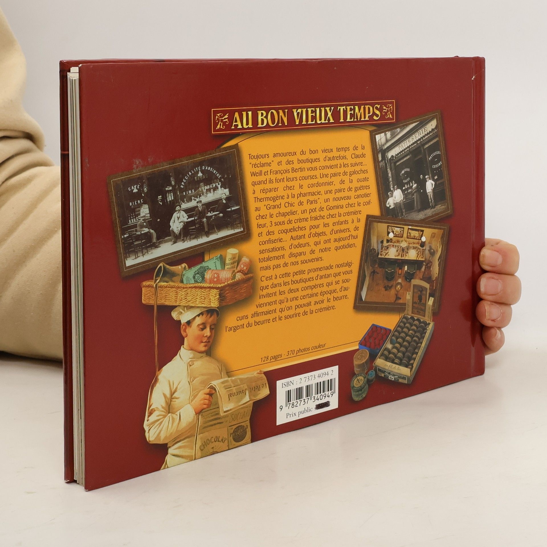 Sous-titre : Commerces et boutiques d’autrefoisBien connus des amateurs de réclames et d’objets anciens, Claude Weill et François Bertin poussent aujourd’hui pour nous la porte des boutiques d’autrefois. Par le texte et par l’image, ils nous entraînent dans un univers coloré et chaleureux, riche en objets aujourd’hui disparus mais qui sentent bon la nostalgie d’une époque révolue. Les plus anciens retrouveront avec plaisir et émotion le souvenir des courses avec maman, d’une visite chez le coiffeur, du Grand Bazar et son rayon jouets, de la pâtisserie de la place pour les gâteaux du dimanche…Magasins de mode, épiceries, drogueries, charcuteries, pharmacies, librairies, boulangeries, cafés et restaurants s’égrènent au fil des pages comme au long d’une rue. N’hésitez pas à entrer, ici, le client est roi…Couverture : Véritable vitrine reconstituée avec une transparence qui permet de voir en relief à l'intérieur de la boutique