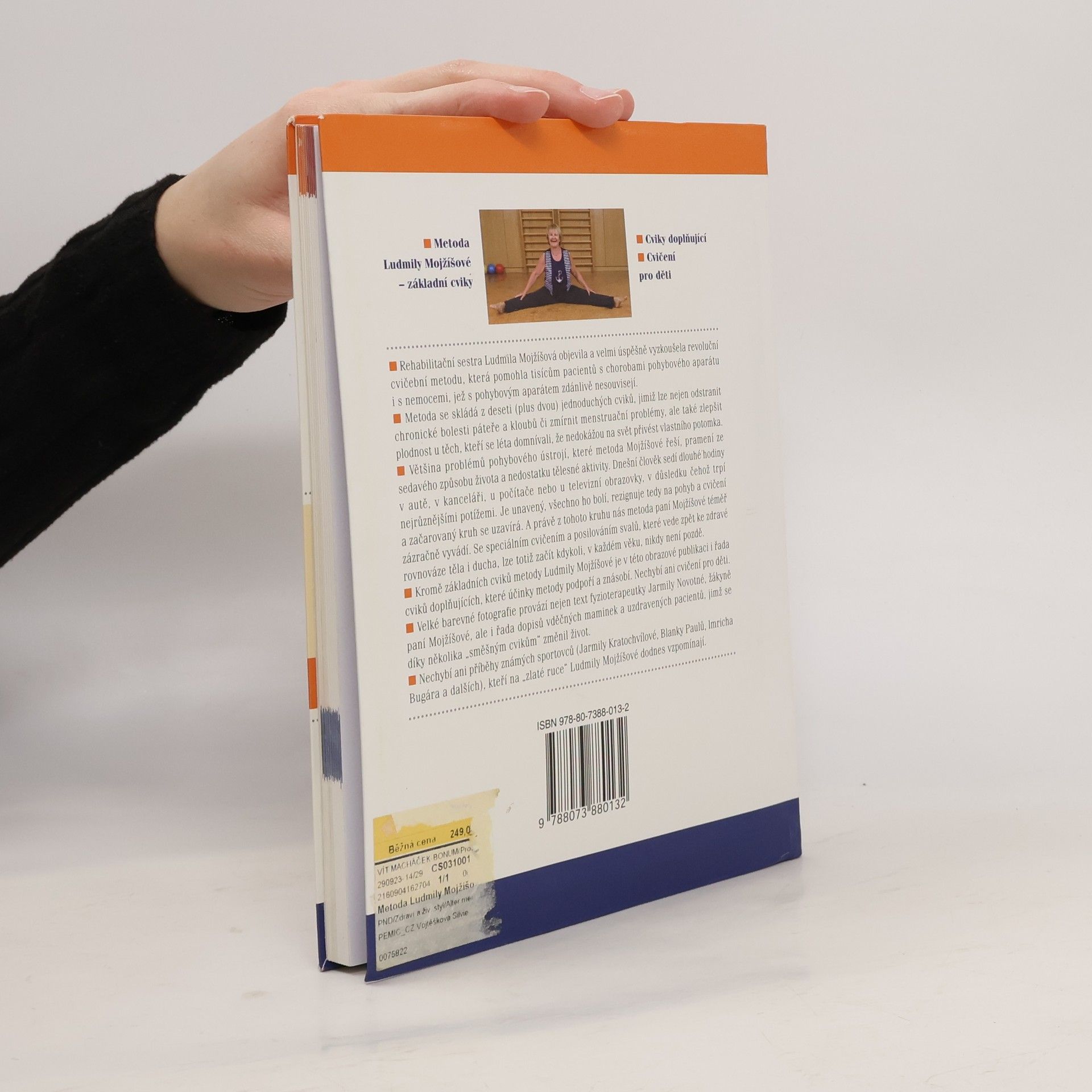Fyzioterapeutka, žákyně Ludmily Mojšíšové, popisuje základní cviky, které pomohly mnoha ženám porodit zdravé dítě, ale také snižují bolesti zad, jsou vhodné při nepravidelné či bolestivé menstruaci, skolióze, bolestech hlavy a migrénách, při špatném držení těla, pro těhotné atd. Cvičení je vhodné pro starší osoby i pacienty s nemocným srdcem. Příručka obsahuje i doplňující cviky a cviky pro děti, dopisy vděčných maminek a příběhy známých sportovců, kterým L. Mojžíšová osobně pomohla.