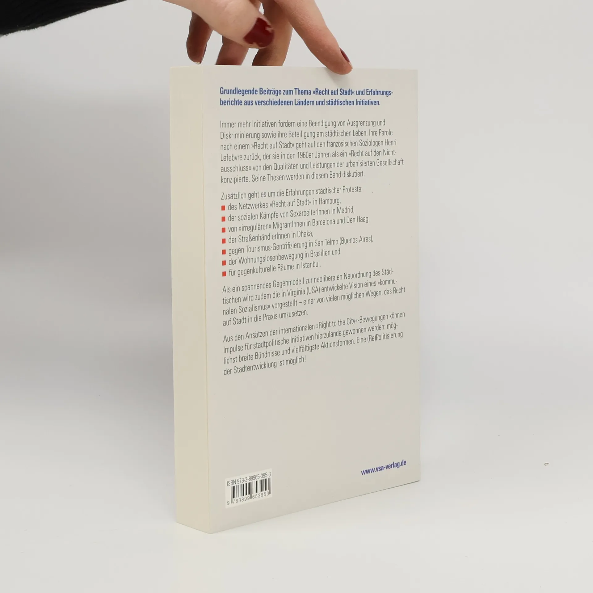 Immer mehr Initiativen fordern eine Beendigung von Ausgrenzung und Diskriminierung sowie ihre Beteiligung am städtischen Leben. Ihre Parole nach einem "Recht auf Stadt" geht auf den französischen Soziologen Henri Lefebvre zurück, der sie in den 1960er Jahren als ein "Recht auf den Nichtausschluss" von den Qualitäten und Leistungen der urbanisierten Gesellschaft konzipierte. Seine Thesen werden in diesem Band diskutiert.Zusätzlich geht es um die Erfahrungen städtischer Proteste:– des Netzwerkes "Recht auf Stadt" in Hamburg,– der sozialen Kämpfe von SexarbeiterInnen in Madrid,– von "irregulären" MigrantInnen in Barcelona und Den Haag,– der StraßenhändlerInnen in Dhaka,– gegen Tourismus-Gentrifizierung in San Telmo (Buenos Aires),– der Wohnungslosenbewegung in Brasilien und– für gegenkulturelle Räume in Istanbul.Als ein spannendes Gegenmodell zur neoliberalen Neuordnung des Städtischen wird zudem die in Virginia (USA) entwickelte Vision eines "kommunalen Sozialismus" vorgestellt – einer von vielen möglichen Wegen, das Recht auf Stadt in die Praxis umzusetzen.Aus den Ansätzen der internationalen "Right to the City"-Bewegungen können Impulse für stadtpolitische Initiativen hierzulande gewonnen werden: möglichst breite Bündnisse und vielfältigste Aktionsformen. Eine (Re)Politisierung der Stadtentwicklung ist möglich!