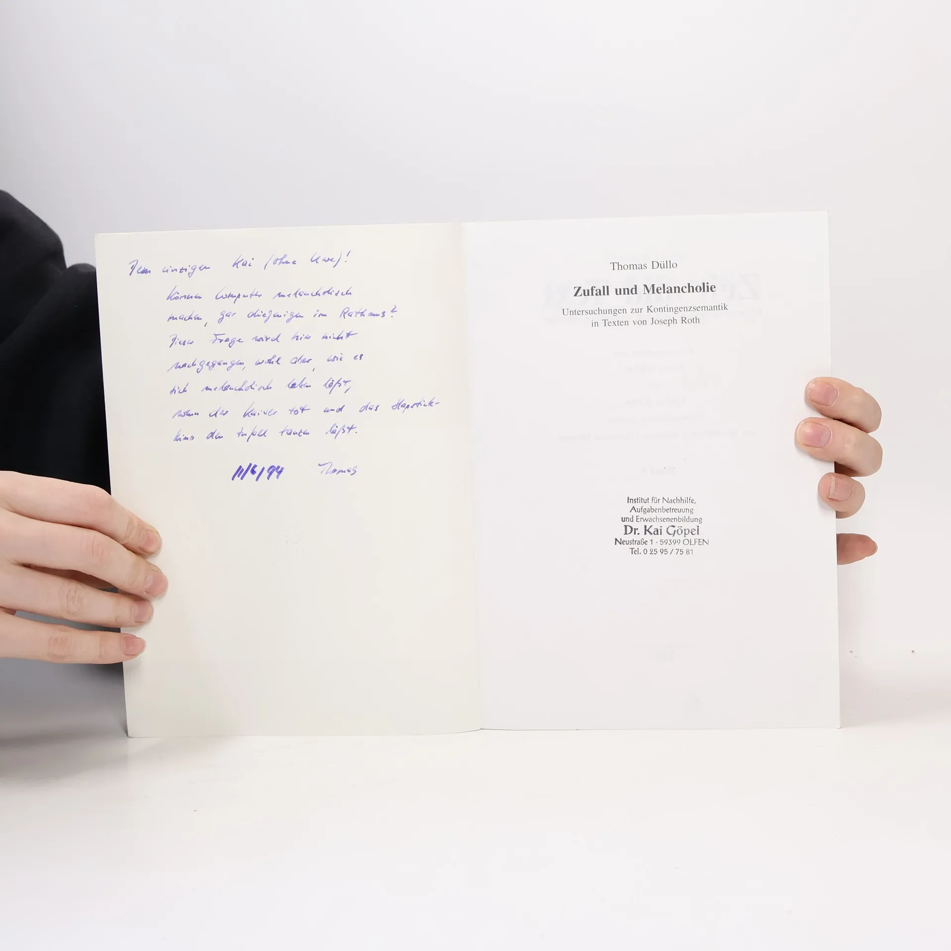 Zufall und Melancholie, Thomas Düllo