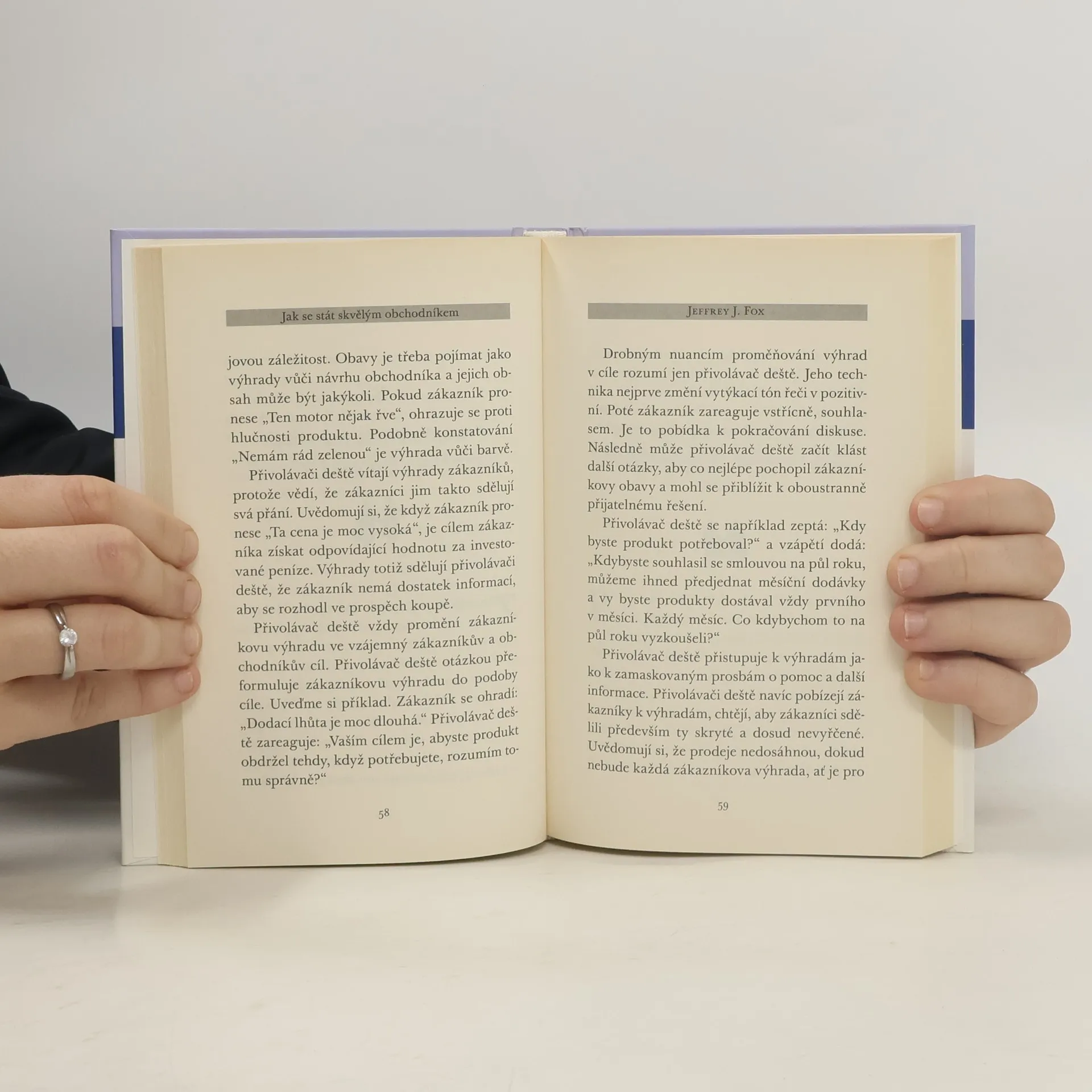 Jeffrey J. Fox nabízí poutavě prezentovaná a srozumitelná doporučení pro obchodní jednání, jejichž cílem je získávání nových a udržení stávajích zákazníků - nejlépe spokojených. V padesáti tipech vás provede typickými i nečekanými situacemi, v nichž se může ocitnout každý obchodník. Upozorňuje na věci, které jsou na první pohled naprosto samozřejmé, ale na ten druhý si zasluhují nemalou pozornost. Poukazuje i na skryté záludnosti a pasti obchodního jednání a samozřejmě doporučuje obchodníkům, jak s nimi úspěšně naložit ke svému prospěchu.