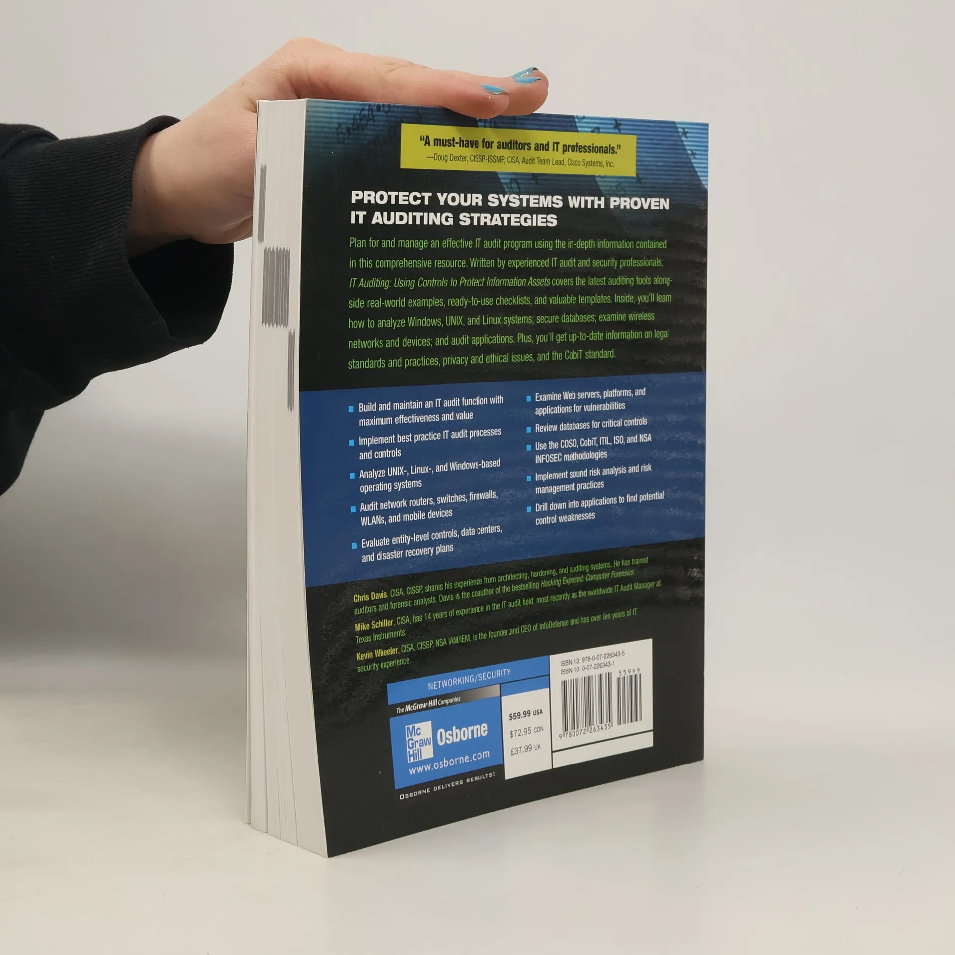 Protect Your Systems with Proven IT Auditing Strategies "A must-have for auditors and IT professionals." -Doug Dexter, CISSP-ISSMP, CISA, Audit Team Lead, Cisco Systems, Inc. Plan for and manage an effective IT audit program using the in-depth information contained in this comprehensive resource. Written by experienced IT audit and security professionals, IT Using Controls to Protect Information Assets covers the latest auditing tools alongside real-world examples, ready-to-use checklists, and valuable templates. Inside, you'll learn how to analyze Windows, UNIX, and Linux systems; secure databases; examine wireless networks and devices; and audit applications. Plus, you'll get up-to-date information on legal standards and practices, privacy and ethical issues, and the CobiT standard. Build and maintain an IT audit function with maximum effectiveness and value