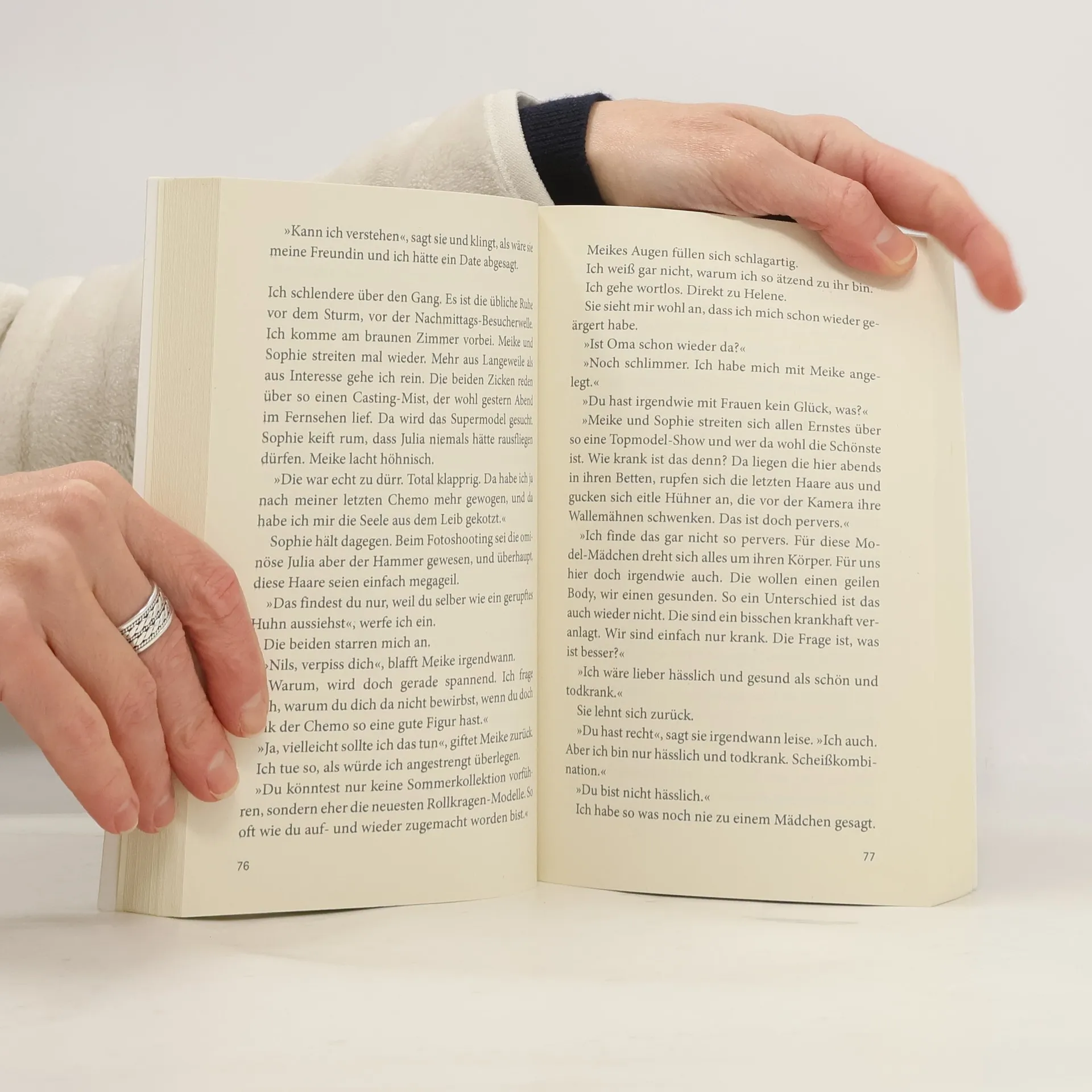 Alter: 16. Diagnose: Krebs, unheilbar »Du wirst sterben.« Die Worte treffen Nils wie ein Schlag. Diagnose: Leukämie, unheilbar. Er ist 16 Jahre alt. Und das soll jetzt alles gewesen sein? Nur Krankenschwester Ulla macht das Leben im Krankenhaus erträglich. Nils hilft ihr, die Patienten auf der Kinderkrebsstation etwas abzulenken. Da wird das Krankenbett zum Piratenschiff , die Einwegspritze zur Wasserpistole, der Flur zum Laufsteg für »Germany's next Topkranke«. Und dann lernt Nils die schwer kranke Helene kennen. Erst durch ihren Tod lernt er, mit seinen eigenen Ängsten umzugehen ... Mit Feingefühl und dem gerade richtigen Funken Humor meistern Birgit Schlieper und Nina Stahl den schmalen Grat zwischen Hoffnung, Verzweifl ung und der Lust am Leben.