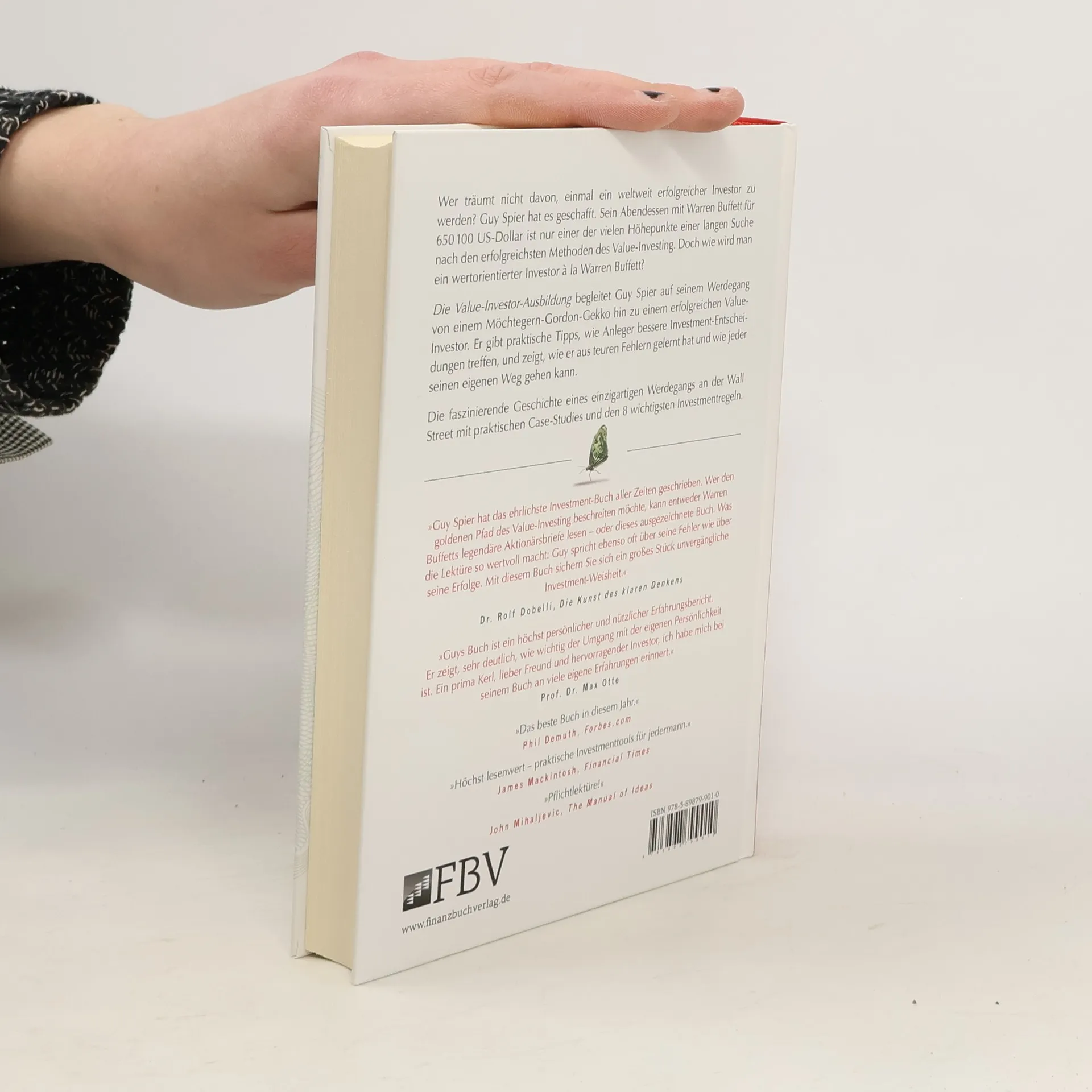 Wer träumt nicht davon, einmal ein weltweit erfolgreicher Investor zu werden? Guy Spier hat es geschafft. Sein Abendessen mit Warren Buffett für 650 100 US-Dollar ist nur einer der vielen Höhepunkte einer langen Suche nach den erfolgreichsten Methoden des Value-Investing. Doch wie wird man ein wertorientierter Investor à la Warren Buffett? Die Value-Investor-Ausbildung begleitet Guy Spier auf seinem Werdegang von einem Möchtegern-Gordon-Gekko hin zu einem erfolgreichen Value- Investor. Er gibt praktische Tipps, wie Anleger bessere Investment-Entscheidungen treffen, und zeigt, wie er aus teuren Fehlern gelernt hat und wie jeder seinen eigenen Weg gehen kann. Die faszinierende Geschichte eines einzigartigen Werdegangs an der Wall Street mit praktischen Case-Studies und den 8 wichtigsten Investmentregeln.