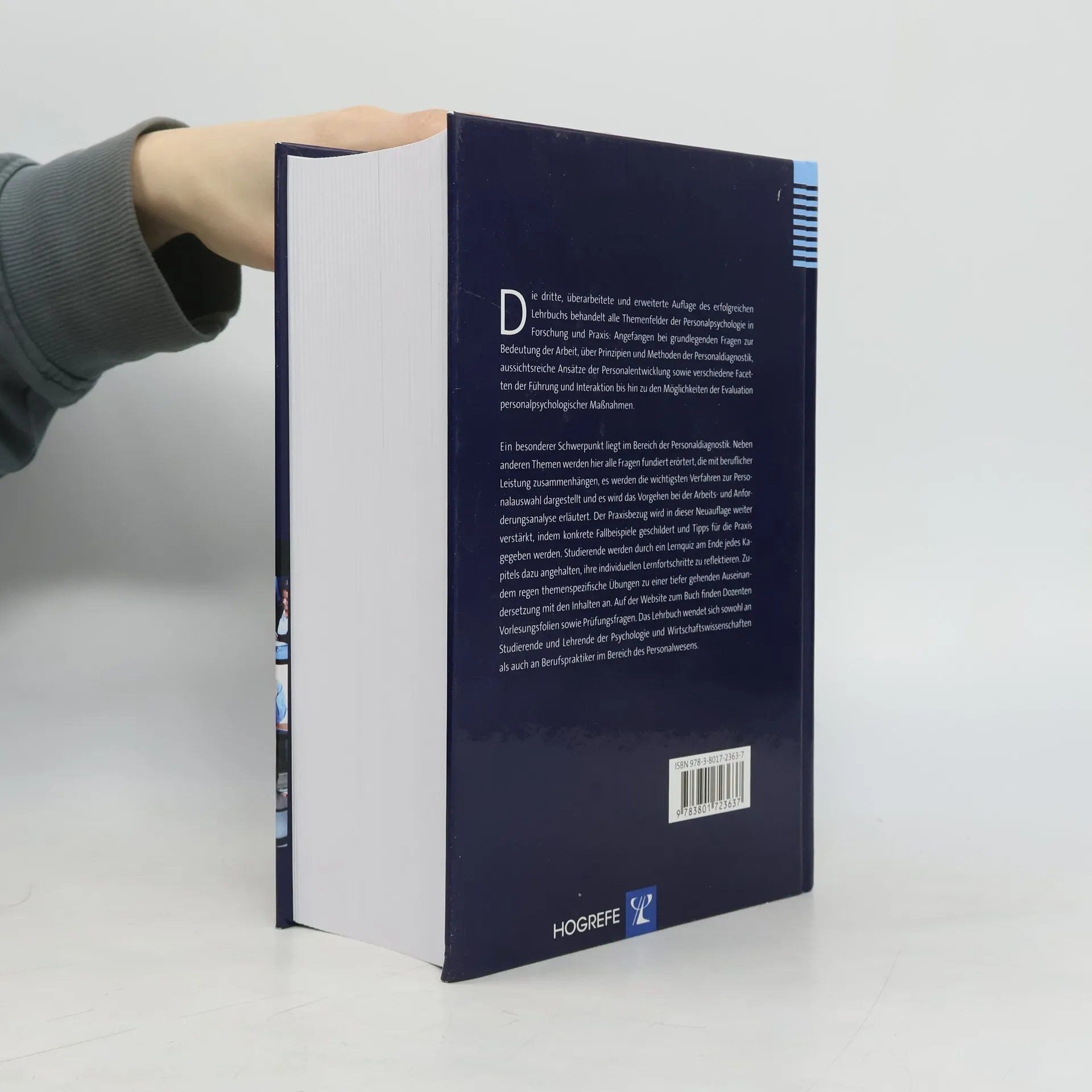 Die dritte, überarbeitete und erweiterte Auflage des erfolgreichen Lehrbuches behandelt alle Themenfelder der Personalpsychologie in Forschung und Praxis: Angefangen bei grundlegenden Fragen zur Bedeutung der Arbeit, über Prinzipien und Methoden der Personaldiagnostik, diverse Ansätze der Personalentwicklung sowie verschiedene Facetten der Führung und Interaktion bis hin zu den Möglichkeiten der Evaluation personalpsychologischer Interventionen. Ein besonderer Schwerpunkt liegt im Bereich der Personaldiagnostik. Hier werden u. a. Fragen der beruflichen Eignung und Leistung diskutiert, verschiedene Verfahren zur Personalauswahl dargestellt und es wird das Vorgehen bei der Arbeits- und Anforderungsanalyse erläutert. Der Praxisbezug der Inhalte wurde in der Neuauflage durch die Ergänzung von konkreten Fallbeispielen sowie von Tipps für die Praxis deutlich verstärkt. Studierende werden durch ein Lernquiz am Ende jedes Kapitels dazu angehalten, ihre individuellen Lernfortschritte zu reflektieren. Zudem regen themenspezifische Übungen zu einer tiefer gehenden Auseinandersetzung mit den Inhalten an. Auf der Website zum Buch finden Dozenten Vorlesungsfolien sowie zusätzliche Prüfungsfragen, die sie in der Lehre einsetzen können. Das Lehrbuch wendet sich sowohl an Studierende und Lehrende der Psychologie und Wirtschaftswissenschaften als auch an Berufspraktiker im Bereich des Personalwesens.