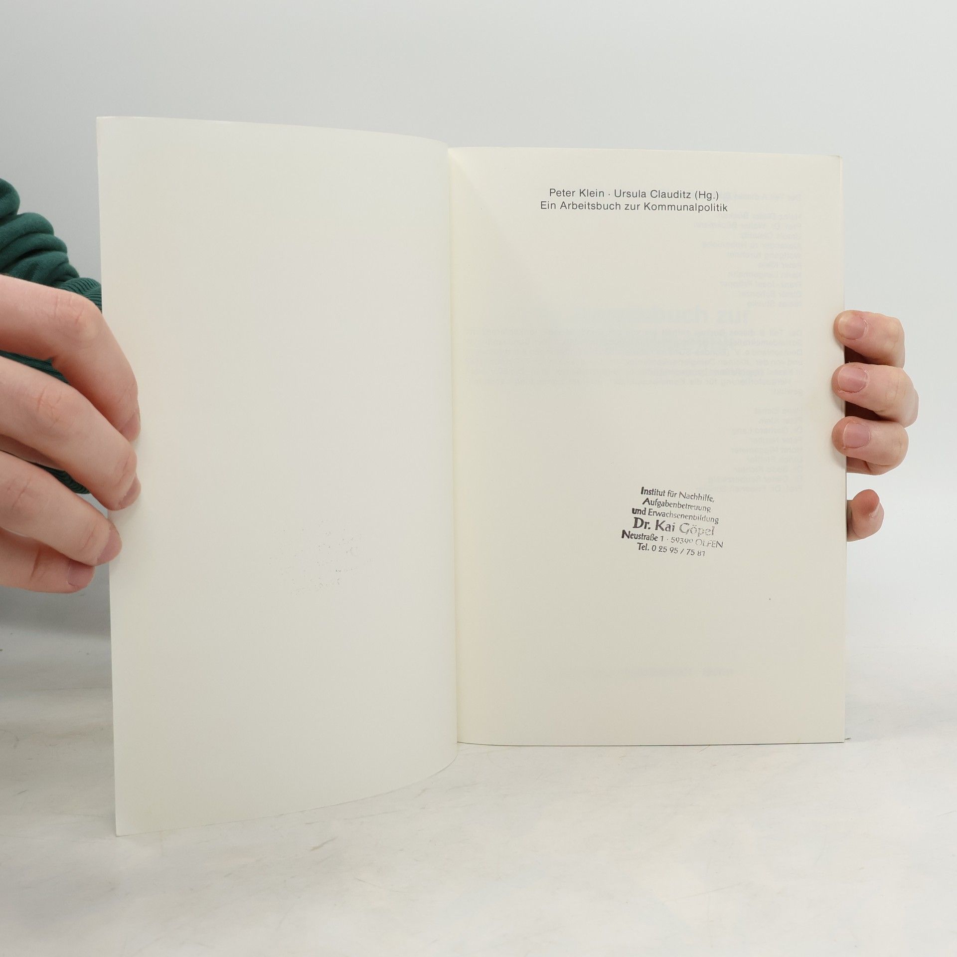 Ein Arbeitsbuch zur Kommunalpolitik, Peter Klein, Ursula Clauditz