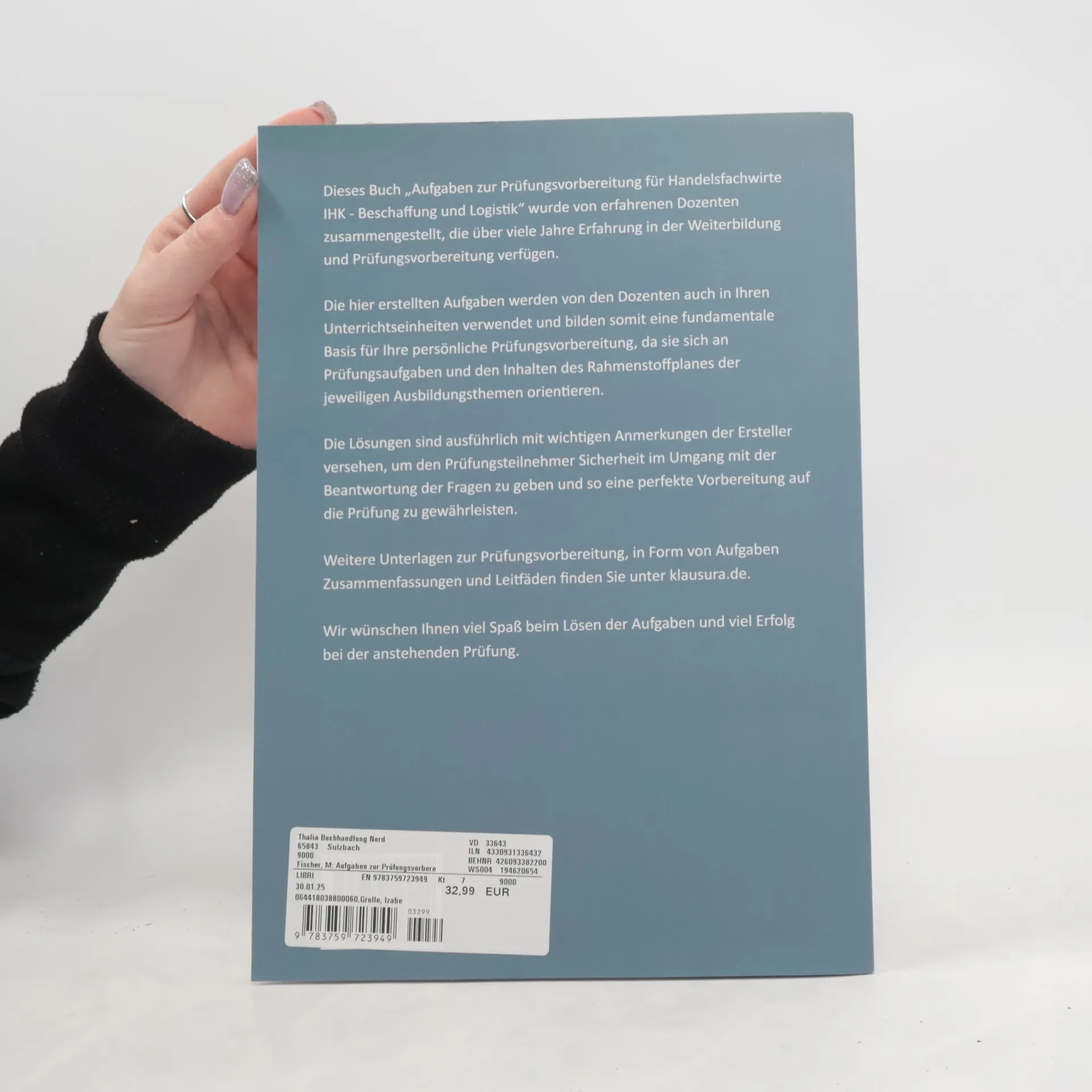 Die Aufgaben in diesem Buch sind speziell für die Prüfungsvorbereitung von geprüften Handelsfachwirten im Bereich Beschaffung und Logistik konzipiert. Erfahrene Dozenten haben diese praxisnahen Übungen erstellt, die sowohl den Rahmenstoffplan als auch typische Prüfungsaufgaben berücksichtigen. Dadurch bieten sie eine solide Grundlage für eine effektive persönliche Vorbereitung und sind zudem im Unterricht bewährt.