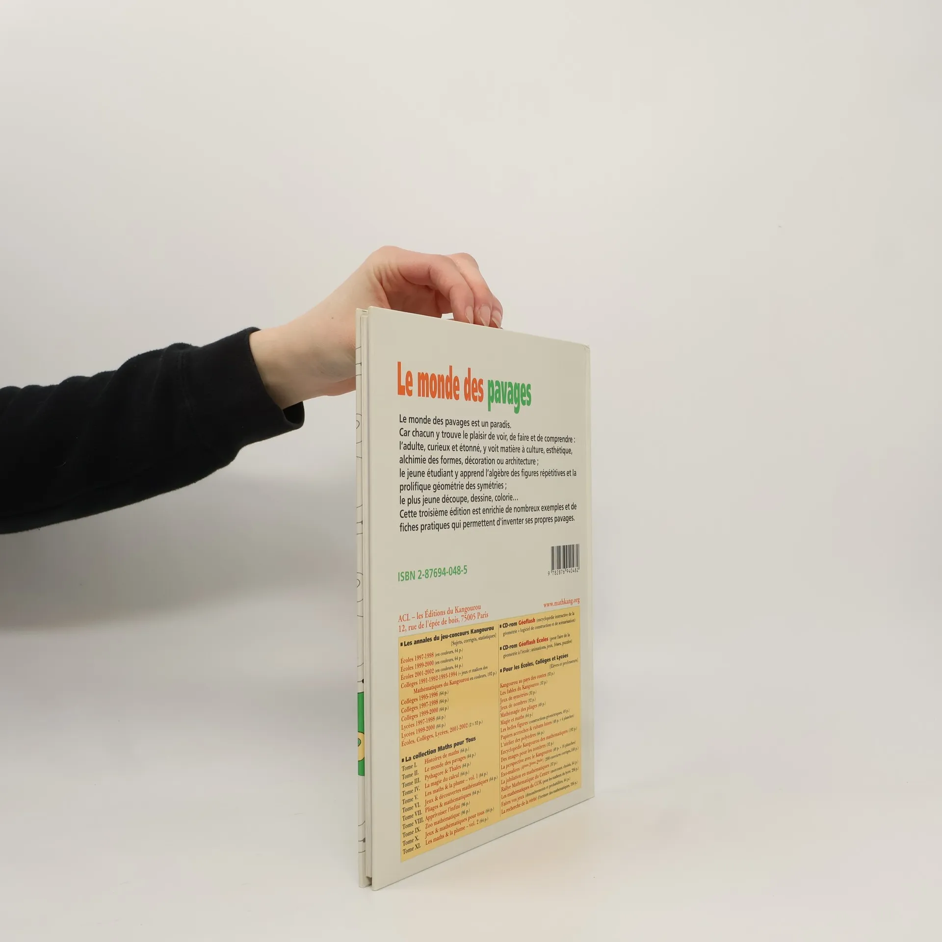 Le monde des pavages est un paradis. Car chacun y trouve le plaisir de voir, de faire et de comprendre : l'adulte, curieux et étonné, y voit matière à culture, esthétique, alchimie des formes, décoration ou architecture ; le jeune étudiant y apprend l'algèbre des figures répétitives et la prolifique géométrie des symétries ; le plus jeune découpe, dessine, colorie... Cette troisième édition est enrichie de nombreux exemples et de fiches pratiques qui permettent d'inventer ses propres pavages.
