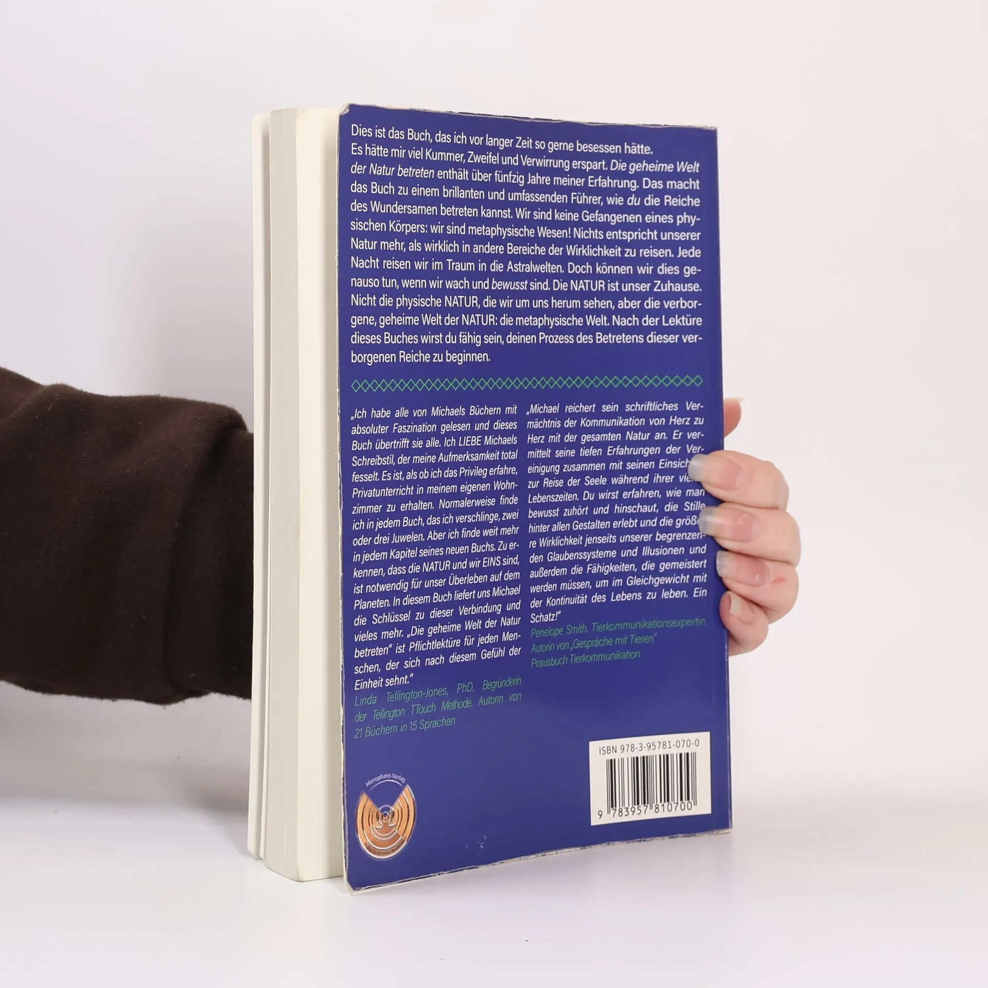 Der preisgekrönte Bestsellerautor von „Mit der Natur reden“ und „Im Reich des Pan“ Michael J. Roads mit seinem neuesten „Die geheime Welt der Natur betreten“Dies ist das Buch, das ich vor langer Zeit so gerne besessen hätte. Es hätte mir viel Kummer, Zweifel und Verwirrung erspart. „Die geheime Welt der Natur betreten“ enthält über fünfzig Jahre meiner Erfahrung. Das macht das Buch zu einem brillanten und umfassenden Führer, wie du die Reiche des Wundersamen betreten kannst. Wir sind keine Gefangenen eines physischen Kö wir sind metaphysische Wesen! Nichts entspricht unserer Natur mehr, als wirklich in andere Bereiche der Wirklichkeit zu reisen. Jede Nacht reisen wir im Traum in die Astralwelten. Doch können wir dies genauso tun, wenn wir wach und bewusst sind. Die NATUR ist unser Zuhause. Nicht die physische NATUR, die wir um uns herum sehen, aber die verborgene, geheime Welt der die metaphysische Welt. Nach der Lektüre dieses Buches wirst du fähig sein, deinen Prozess des Betretens dieser verborgenen Reiche zu beginnen.„Ich habe alle von Michaels Büchern mit absoluter Faszination gelesen und dieses Buch übertrifft sie alle. Ich LIEBE Michaels Schreibstil, der meine Aufmerksamkeit total fesselt. Es ist, als ob ich das Privileg erfahre, Privatunterricht in meinem eigenen Wohnzimmer zu erhalten. Normalerweise finde ich in jedem Buch, das ich verschlinge, zwei oder drei Juwelen. Aber ich finde weit mehr in jedem Kapitel seines neuen Buchs. Zu erkennen, dass die NATUR und wir EINS sind, ist notwendig für unser Überleben auf dem Planeten. In diesem Buch liefert uns Michael die Schlüssel zu dieser Verbindung und vieles mehr. „Die geheime Welt der Natur betreten“ ist Pflichtlektüre für jeden Menschen, der sich nach diesem Gefühl der Einheit sehnt.Linda Tellington-Jones, PhD, Begründerin der Tellington TTouch Methode. Autorin von 21 Büchern in 15 Sprachen, u.a. Tellington-Training für Pferde, das große Lehr- und Praxisbuch„Michael reichert sein schriftliches Vermächtnis der Kommunikation von Herz zu Herz mit der gesamten Natur an. Er vermittelt seine tiefen Erfahrungen der Vereinigung zusammen mit seinen Einsichten zur Reise der Seele während ihrer vielen Lebenszeiten. Du wirst erfahren, wie man bewusst zuhört und hinschaut, die Stille hinter allen Gestalten erlebt und die größere Wirklichkeit jenseits unserer begrenzenden Glaubenssysteme und Illusionen und außerdem die Fähigkeiten, die gemeistert werden müssen, um im Gleichgewicht mit der Kontinuität des Lebens zu leben. Ein Schatz!“Penelope Smith, Tierkommunikationsexpertin, Autorin von „Gespräche mit Tieren“ Praxisbuch Tierkommunikation