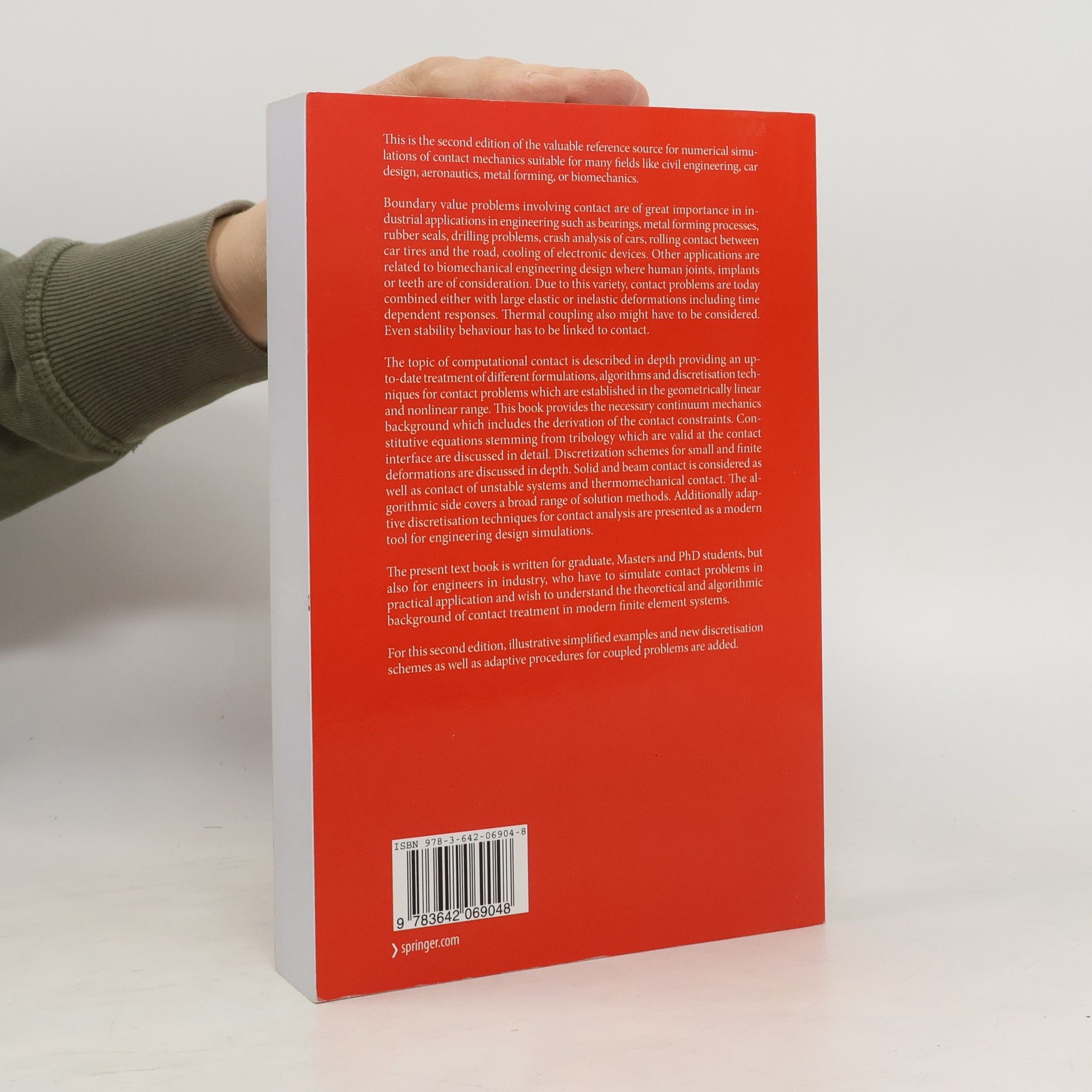 Contact mechanics has its application in many engineering problems. No one can walk without frictional contact, and no car would move for the same r- son. Hence contact mechanics has, from an engineering point of view, a long history, beginning in ancient Egypt with the movement of large stone blocks, over ?rst experimental contributions from leading scientists like Leonardo da Vinci andCoulomb, to today s computational methods. In the past c- tact conditions were often modelled in engineering analysis by more simple boundary conditions since analytical solutions were not present for real world applications. In such cases, one investigated contact as a local problem using the stress and strain ?elds stemming from the analysis which was performed for the entire structure. With the rapidly increasing power of moderncomp- ers, more and more numerical simulations in engineering can include contact constraints directly, which make the problems nonlinear. This book is an account of the modern theory of nonlinear continuum mechanics and its application to contact problems, as well as of modern s- ulation techniques for contact problems using the ?nite element method. The latter includes a variety of discretization techniques for small and large def- mation contact. Algorithms play another prominent role whenrobustand- cient techniques have to be designed for contact simulations. Finally, adaptive methods based on error controlled ?nite element analysis and mesh adaption techniques are of great interest for the reliable numerical solution of contact problems."