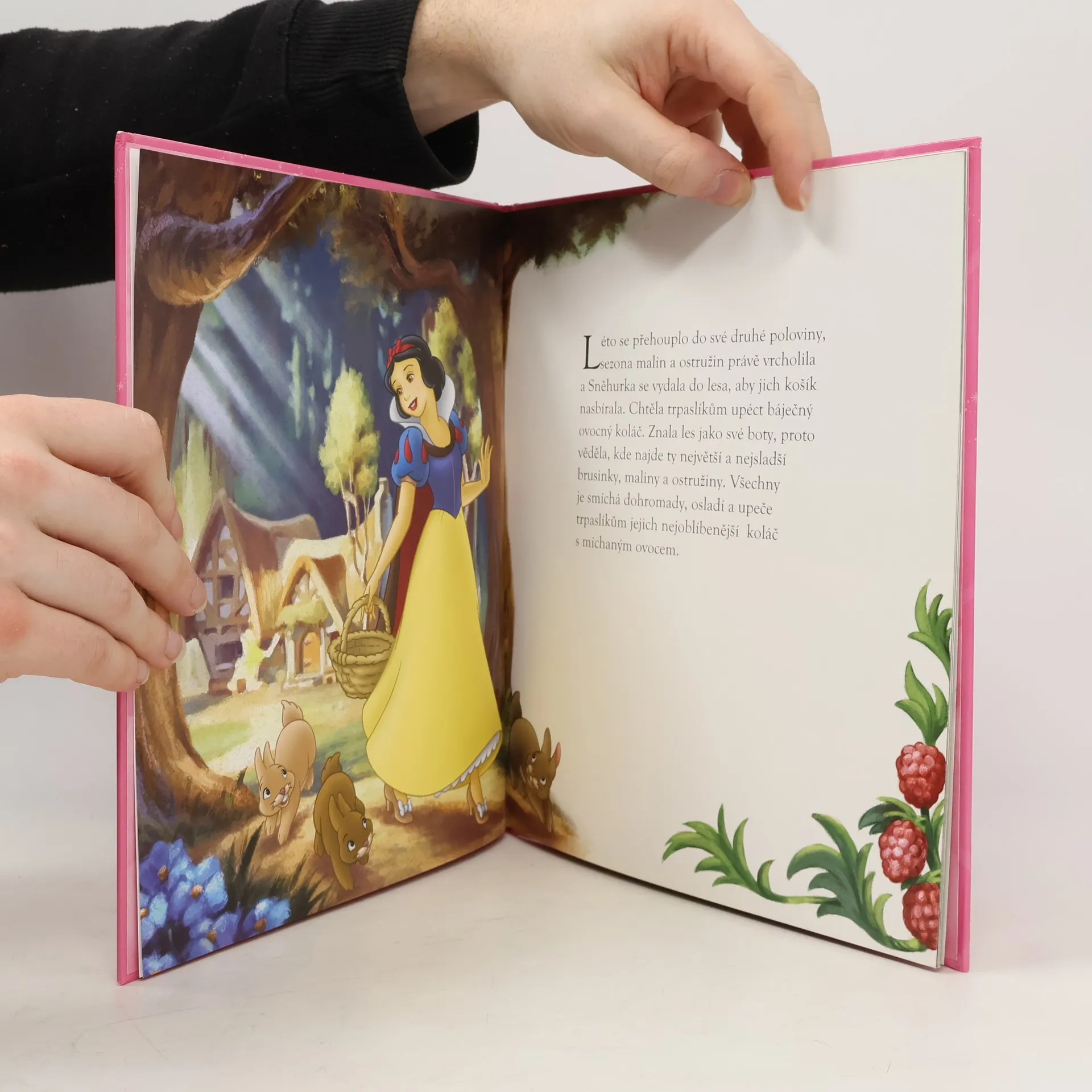 Sněhurka sbírá v lese maliny, ostružiny a brusinky, když vtom uslyší podivný zvuk. Sleduje žalostné kňourání a kvílení, až přijde ke starému kmeni, ve kterém zůstalo uvězněné malé medvídě. Nakonec však všechno dobře dopadne a s pomocí svých lesních přátel Sněhurka medvídě vysvobodí z pasti.