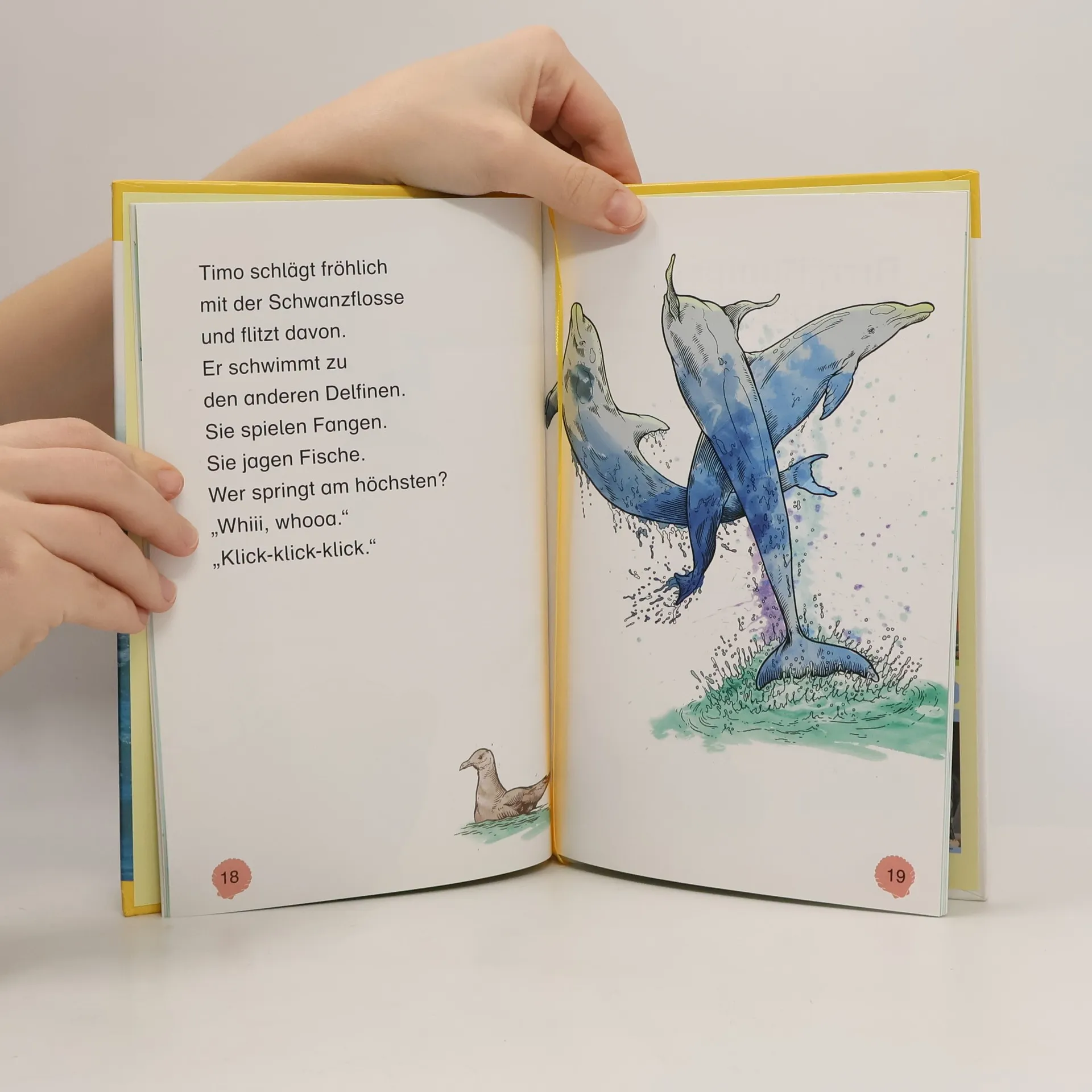 Der kleine Delfin Timo spielt gern mit seinen Freunden. Sie tauchen und springen und haben viel Spaß miteinander. Doch eines Tages schwimmt Timo zu weit davon. Die Leser begleiten ihn auf seinem Abenteuer und erfahren dabei Wissenswertes über Delfine. Die Superleser!-Bücher kombinieren das Beste aus Sach- und erzählendem Buch: Aufregende Geschichten werden durch interessante Hintergrundinformationen ergänzt - so kommt der Spaß, aber auch der Lerneffekt nicht zu kurz! Die Bücher gibt es in drei Lesestufen: für Leseanfänger in gelb, für Erstleser in grün und für Leseprofis in blau. Am Ende jedes Bandes gibt es ein Quiz mit Fragen zum Text sowie Hinweise und Tipps für Eltern, wie sie ihr Kind beim Lesen lernen bestmöglich unterstützen können. Die Sach-Geschichten der ersten Lesestufe sind für Kids ab der ersten Schulklasse optimal geeignet. Auf jeweils 48 Seiten gibt es fesselnde Geschichten in extragroßer Fibelschrift und mit großformatigen Bildern. Die Schrift eignet sich auch zum gemeinsamen Vorlesen! Dieses Buch ist bei Antolin. de verfügbar.