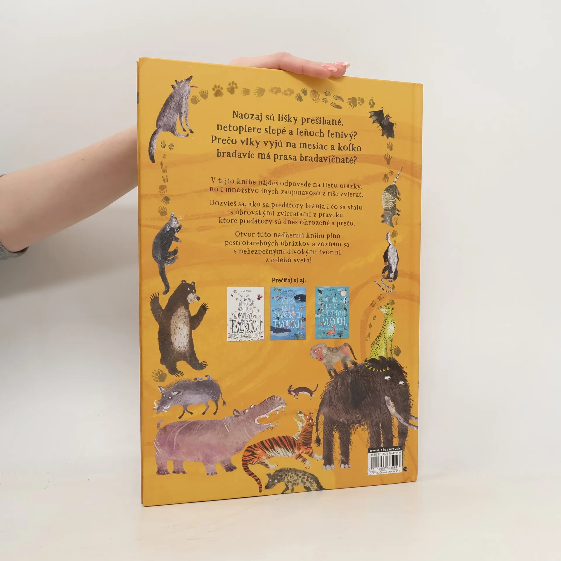 Tigre, hyeny a iné predátory Naozaj sú líšky prešibané, paviány nadurdené a netopiere slepé? Prečo vlky vyjú na mesiac? Ako veľmi lenivý je leňoch? Koľko bradavíc má prasa bradavičnaté? V tejto knihe nájdete odpovede na tieto i mnohé iné otázky a dozviete mnoho zaujímavostí o tom, ako sa predátory bránia, ako dávajú o sebe vedieť, čo sa stalo s predátormi ľadovej doby a ktoré predátory sú ohrozené a prečo. Zoznámite sa s mnohými druhmi nádherných i prekvapivých divokých tvorov z celého sveta.