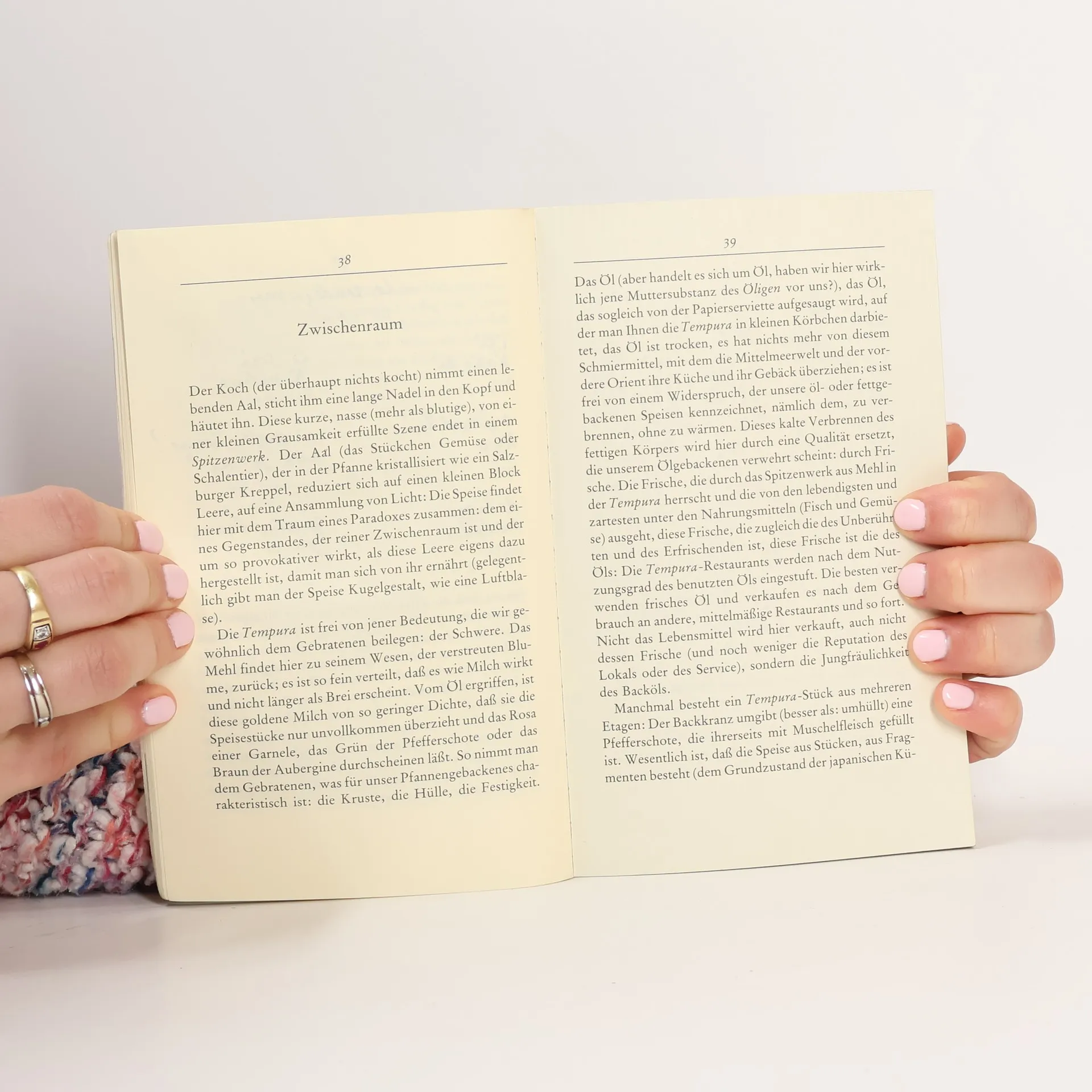 Auf einer Reise nach Japan wurde er mit der japanischen Zeichenwelt vertraut und bemerkte, daß diese Zeichen seiner Vorstellung vom Zeichen am nächsten kamen. Das japanische Zeichen ist stark: Es ist in bewundernswerter Weise Regeln unterworfen, angeordnet, dargestellt, niemals naturalisiert oder rationalisiert. Das japanische Zeichen ist leer: Sein Signifikat flieht, es gibt keinen Gott, keine Wahrheit, keine Moral, die diesen Signifikanten zugrunde liegt, die ohne ihr Gegenstück herrschen. Und vor allem sind die höhere Qualität dieses Zeichens, die Anmut seiner Behauptung und der erotische Charme, mit dem es auftritt, überall eingeprägt, auf den belanglosesten Gegenständen und Verhaltensweisen, die wir normalerweise in das Gebiet des Unbedeutenden oder Banalen verweisen.
