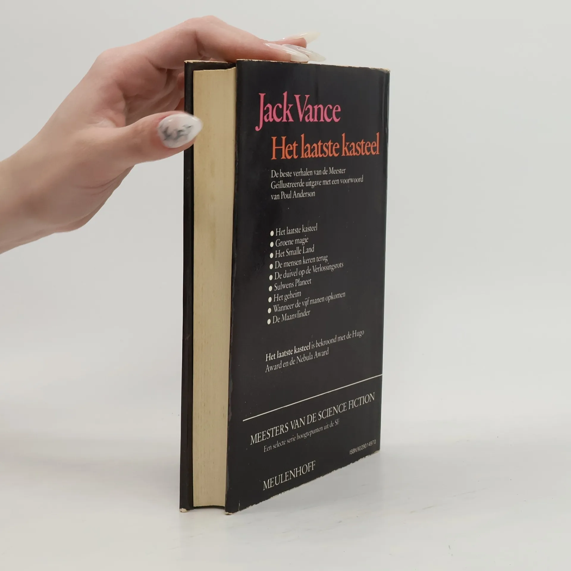 HET LAATSTE KASTEEL (The Last Castle, Galaxy Magazine, april 1966, vert.: Mark Carpentier Alting, illustraties: Marvano)GROENE MAGIE (Green Magic, The Magazine of Fantasy & Science Fiction, juni 1963, vert.: Warner Flamen, illustraties: Lela Dowling)HET SMALLE LAND (The Narrow Land, Fantastic, juli 1967, vert: Jaime Martijn, illustraties: Tom Nesbitt)DE MENSEN KEREN TERUG (The Men Return, Infinity, juli 1957, vert: Warner Flamen, illustraties: Lela Dowling)DE DUIVEL OP DE VERLOSSINGSROTS (The Devil on Salvation's Bluff, Star Science Fiction 3, 1955, vert: Warner Flamen, illustraties: Marvano)SULWENS PLANEET (Sulwen's Planet, The Farthest Reaches, 1968, vert: Warner Flamen, illustraties: Frank ter Horst)HET GEHEIM (The Secret, Impulse, maart 1966, vert: Mark Carpentier Alting, illustraties: Lela Dowling)WANNEER DE VIJF MANEN OPKOMEN (When the Five Moons Rise, Cosmos Science Fiction, maart 1954, vert: Jaime Martijn, illustraties: Chris Vandendriessche)DE MAANVLINDER (The Moon Moth, Galaxy Magazine, augustus 1961, vert: Warner Flamen, illustraties: C. Lee Healy)