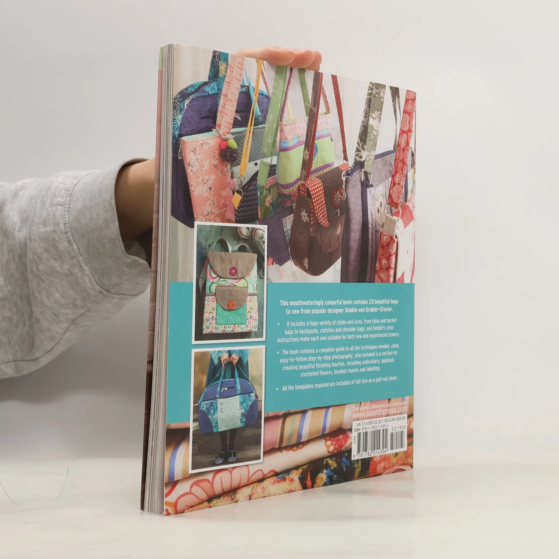 Sew a range of 20 beautiful, colorful bags, from totes and backpacks to clutches and shoulder bags.Add a gorgeous finishing touch to any outfit! This mouthwateringly colorful book contains 20 beautiful bags to sew from popular designer Debbie von Grabler-Crozier. It includes a huge variety of different styles and sizes, from totes and bucket bags to backpacks, clutches and shoulder bags, and Debbie makes each one easy. The book contains a complete guide to all the techniques needed, shown using easy-to-follow step-by-step photography; also included is a section on creating beautiful finishing touches, including embroidery, applique, crocheted flowers, beaded charms and labelling. All the templates required are included on a handy pull-out sheet."Author von Grabler-Crozier provides clear instructions for crafting deceptively simple bags so even beginners will be inserting pockets and zippers like a pro. The author of a craft blog, Pretty Things, she has assembled patterns for 20 bags made out of many pieces, which is perfect for using scraps or fat quarters, while also opening up infinite options for color and pattern mixing, even though she includes the specific fabrics she used for each bag so that crafters can, if they wish, follow her vibrant examples. In addition to a list of supplies and tools needed to create each bag and its accompanying embellishments, von Crozier- Grabler includes directions for inserting a zipper or tackling free-motion embroidery. All of her instructions are precise and specific, making the assembly of a multipocketed, zippered diaper bag with a removable strap totally doable. And there are also patterns for simpler bags. Other projects include a wristlet, several totes, purses, a backpack, and a weekender bag. Large, copyable patterns and templates are included, ensuring that this is a colorful addition to any craft collection". -- Booklist January 1 2018 issue