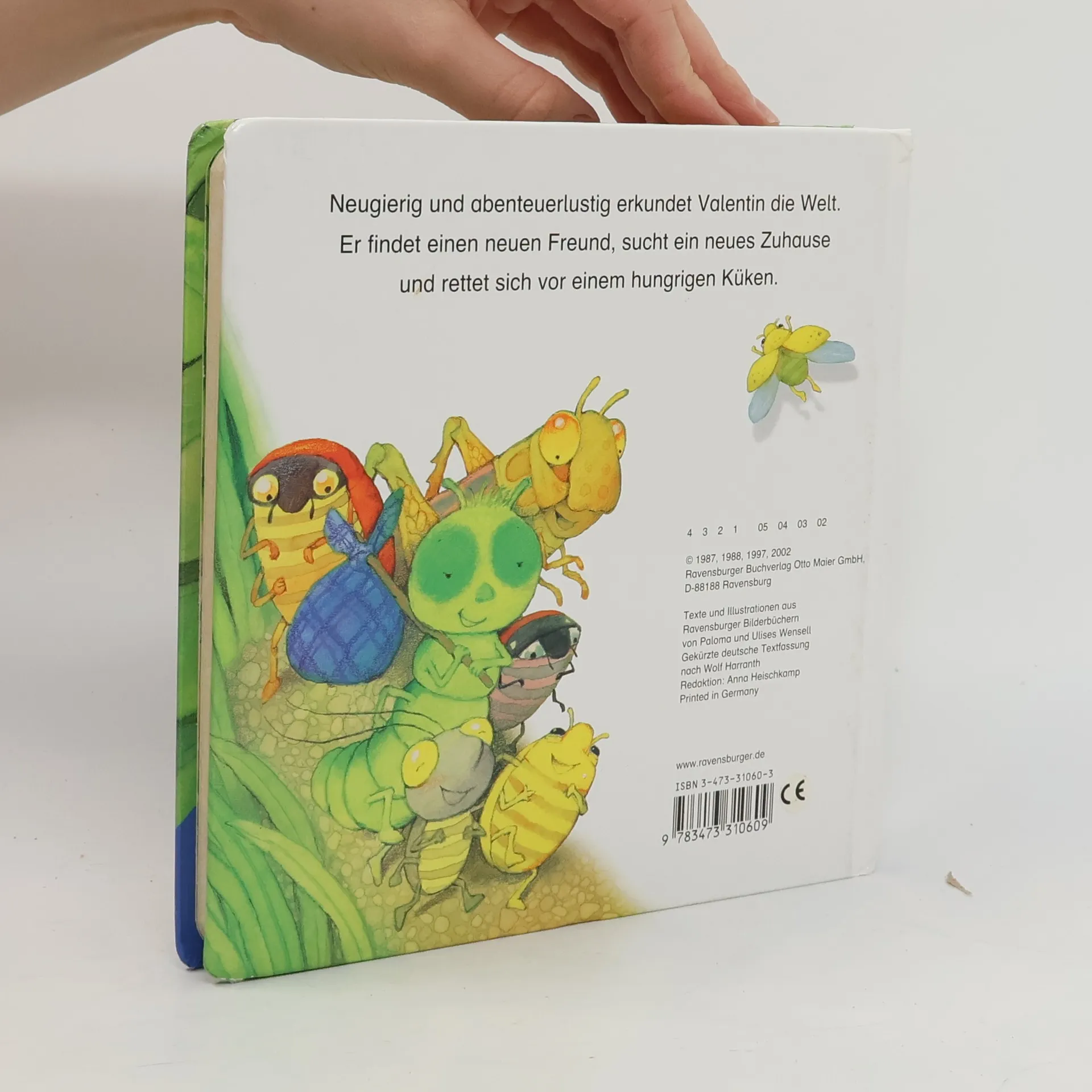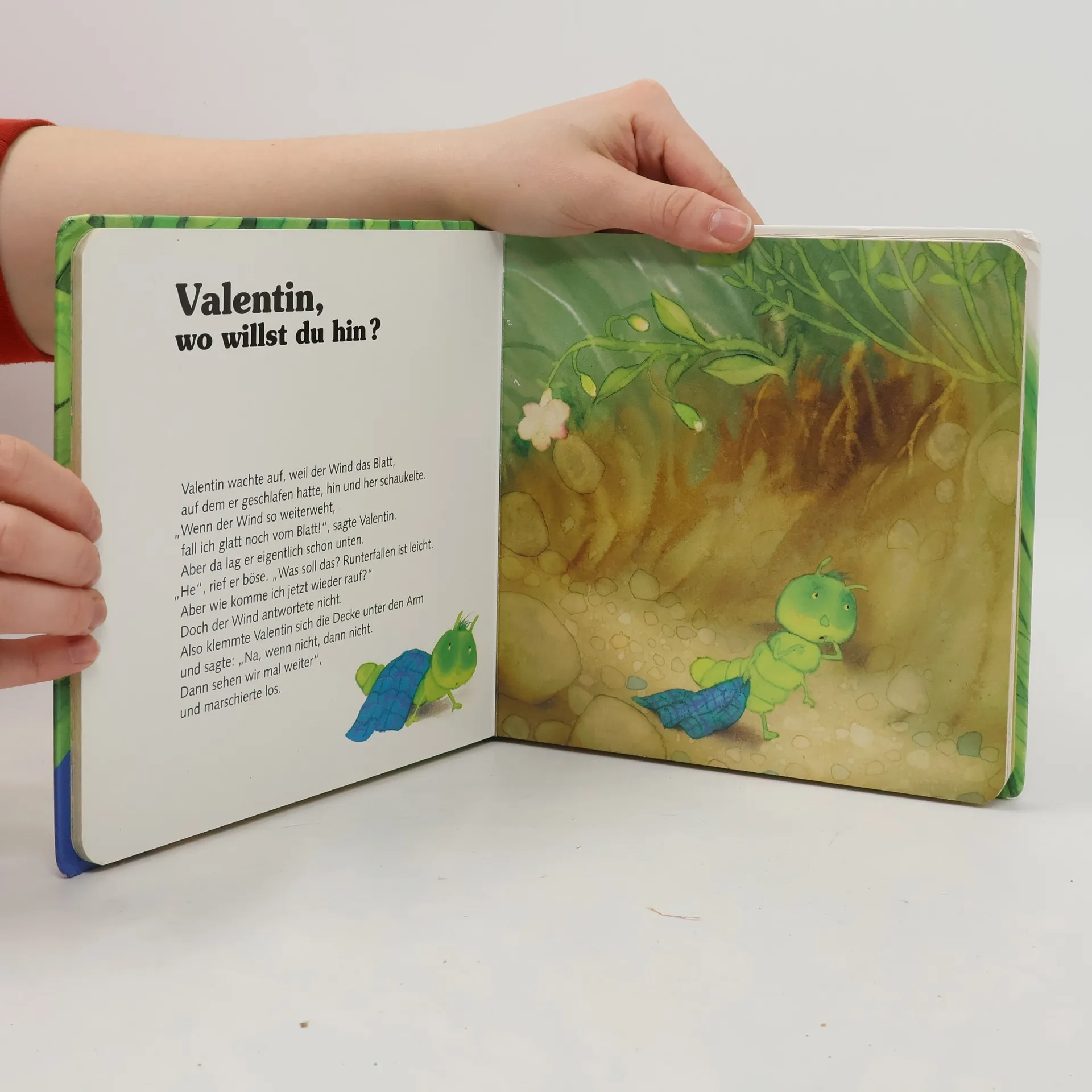 Wenn die Raupe Valentin im Wald spazieren geht, erlebt sie immer wieder neue kleine Abenteuer. Diesmal findet Valentin zunächst unerwartet einen neuen Freund. Nachdem seine Suche nach einem neuen Zuhause erfolglos bleibt, entschließt er sich, in die weite Welt hinaus zu ziehen. Schließlich muss er sich noch einige Tricks einfallen lassen, um nicht von einem hungrigen Küken verzehrt zu werden.