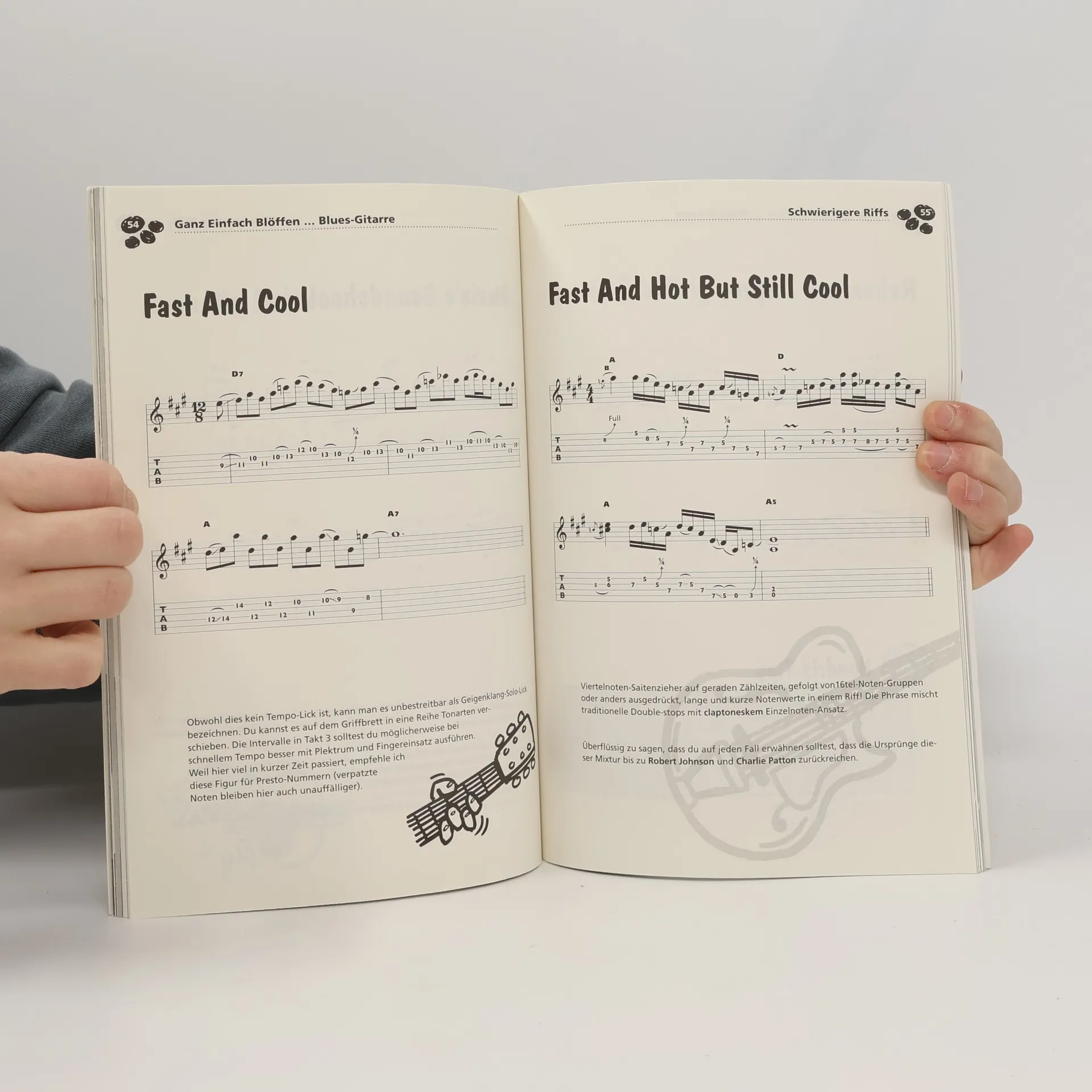 Blues-Gitarre spielen und Erfolg haben mit dem ultimativen Crash-Kurs! Sie werden nicht nur ein paar einfache beeindruckende Blues Licks lernen sondern auch erfahren, wie Sie entspechend zu kleiden und wie in jeder Blues Konversation zu bestehen. Sie werden Rat bekommen fr die Wahl des richtigen Instruments, lernen authentischen Blues-Jargon, die richtigen Namen nennen und werden heisse Tipps fr das Blues-Songwriting bekommen.