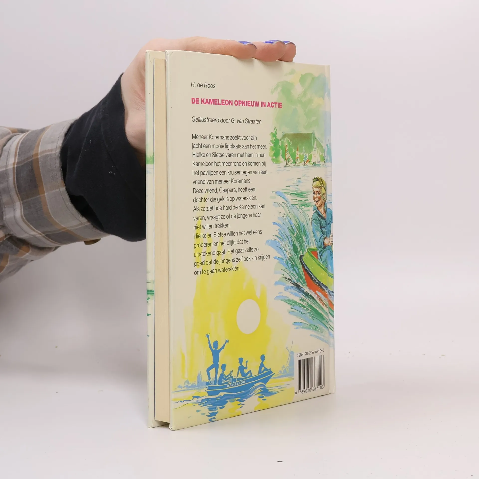 Meneer Koremans zoekt voor zijn jacht een mooie ligplaats aan het meer. Hielke en Sietse varen met hem in hun Kameleon het meer rond en komen bij het paviljoen een kruiser tegen van een vriend van meneer Koremans. Deze vriend, Caspers, heeft een dochter die gek is op waterskien. "Als ze ziet hoe hard de Kameleon kan varen, vraagt ze of de jongens haar niet willen trekken. Hielke en Sietse willen het wel eens proberen en het blijkt dat het uitstekend gaat. Het gaat zelfs zo goed dat de jongens zelf ook zin krijgen om te gaan waterskien.