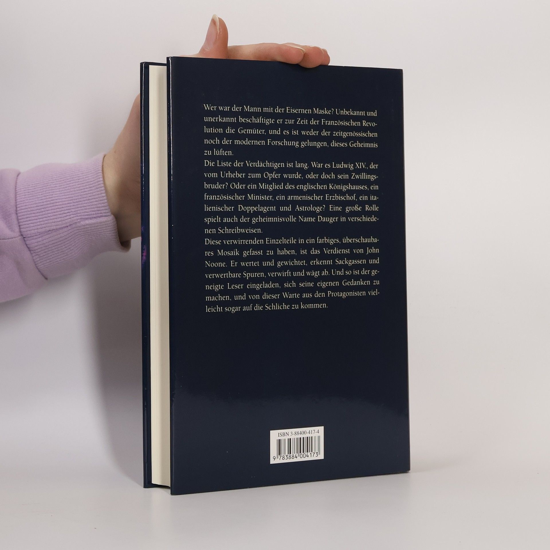 Leonardo DiCaprio hat ihn im Film verkörpert und ebenso Richard Chamberlain – den Mann mit der Eisernen Maske. Und eines verraten die Quellen: Es gab ihn wirklich. Doch war er tatsächlich der Zwilling von Ludwig XIV., eingesperrt von seinem grausamen Bruder, der um seine alleinige Herrschaft fürchtete? Oder der berühmte Dichter Molière, ausgeschaltet von einer machtgierigen Sekte? Nicolas Fouquet, der geniale Finanzminister oder ein "englischer Milord"? Wessen Skelett war es, das man modernd in der Bastille fand? Diesen ungeklärten Fragen geht John Noone in seiner spannenden Spurensuche nach. Der Mythos um den geheimnisvollen Gefangenen, der unter den schärfsten Sicherheitsvorkehrungen bis an sein Lebensende im Kerker bleiben musste, hat über 300 Jahre lang für immer neue Spekulationen gesorgt. Er beschäftigte Voltaire, den großen Geist der Aufklärung, und Alexandre Dumas widmete ihm einen seiner Musketier-Romane. Wie ein Detektiv überprüft der Autor auch den kleinsten Hinweis in alten Briefen und Urkunden, um die wahre Identität des Gefangenen hinter der Maske aufzudecken. Bei aller Sachlichkeit entsteht so ein Sittengemälde der Gesellschaft zur Zeit des Sonnenkönigs, die geprägt war von politischen Verschwörungen und persönlichen Intrigen. Für die Gunst des Königs schreckten einige Damen auch vor schwarzen Messen und und Giftmord nicht zurück... Wenn am Ende alle Fakten benannt sind, präsentiert uns Noone seine eigene Theorie, die ebenso einfach wie verblüffend ist.