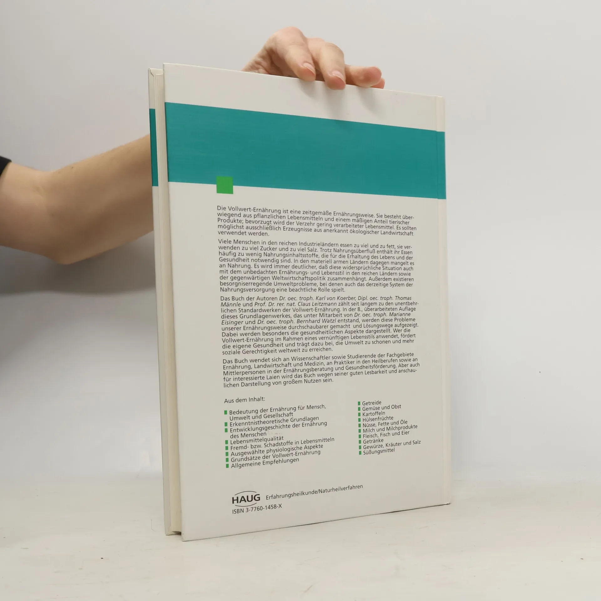 Dieses Standardwerk der Ernährung bringt Transparenz in die gesundheitlichen, ökonomischen, ökologischen und sozialen Probleme unserer Ernährungsweise und zeigt konkrete Lösungswege auf der Basis einer vollwertigen Ernährung auf. Aus dem Inhalt der 10. Auflage dieses Grundlagenwerkes für eine zeitgemäße und nachhaltige Ernährung: - Ganzheitliche Lebensmittelqualität und Grundsätze der Vollwert-Ernährung - Die wichtigsten Lebensmittelgruppen im Überblick - Konkrete Empfehlungen für die Zusammenstellung der Nahrung - Aktuelle Kapitel zu Gentechnik, Lebensmittelbestrahlung, Mikrowellenerhitzung, Zusatzstoffen und Funktionellen Lebensmitteln Jetzt neu: Fördernde und hemmende Einflüsse bei der Umsetzung der Vollwert-Ernährung und Ernährungsempfehlungen für besondere Bevölkerungsgruppen