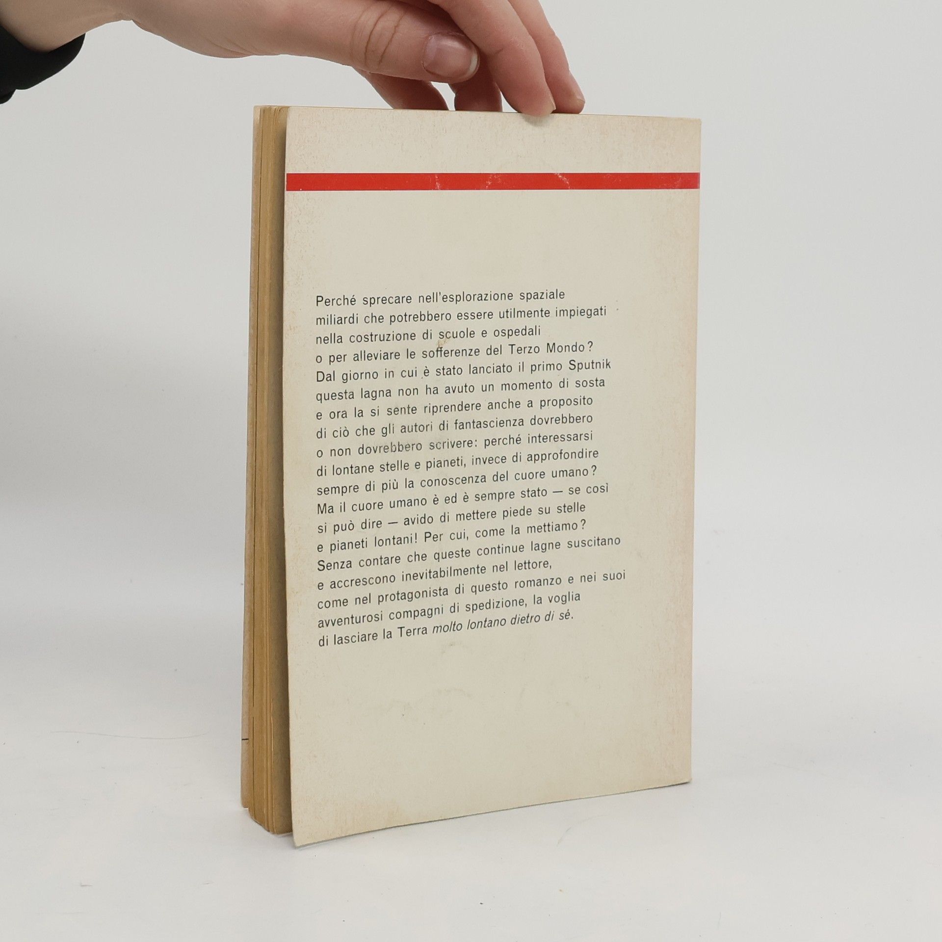 Perché sprecare nell'esplorazione spaziale miliardi che potrebbero essere utilmente impiegati nella costruzione di scuole e ospedali o per alleviare le sofferenze del Terzo Mondo? Dal giorno in cui è stato lanciato il primo Sputnik questa lagna non ha avuto un momento di sosta e ora la si sente riprendere anche a proposito di ciò che gli autori di fantascienza dovrebbero o non dovrebbero scrivere: perché interessarsi di lontane stelle e pianeti, invece di approfondire sempre di più la conoscenza del cuore umano? Ma il cuore umano è ed è sempre stato se così si può dire avido di mettere piede su stelle e pianeti lontani! Per cui, come la mettiamo ? Senza contare che queste continue lagne suscitano e accrescono inevitabilmente nel lettore, come nel protagonista di questo romanzo e nei suoi avventurosi compagni di spedizione, la voglia di lasciare la Terra molto lontano dietro di sé.
