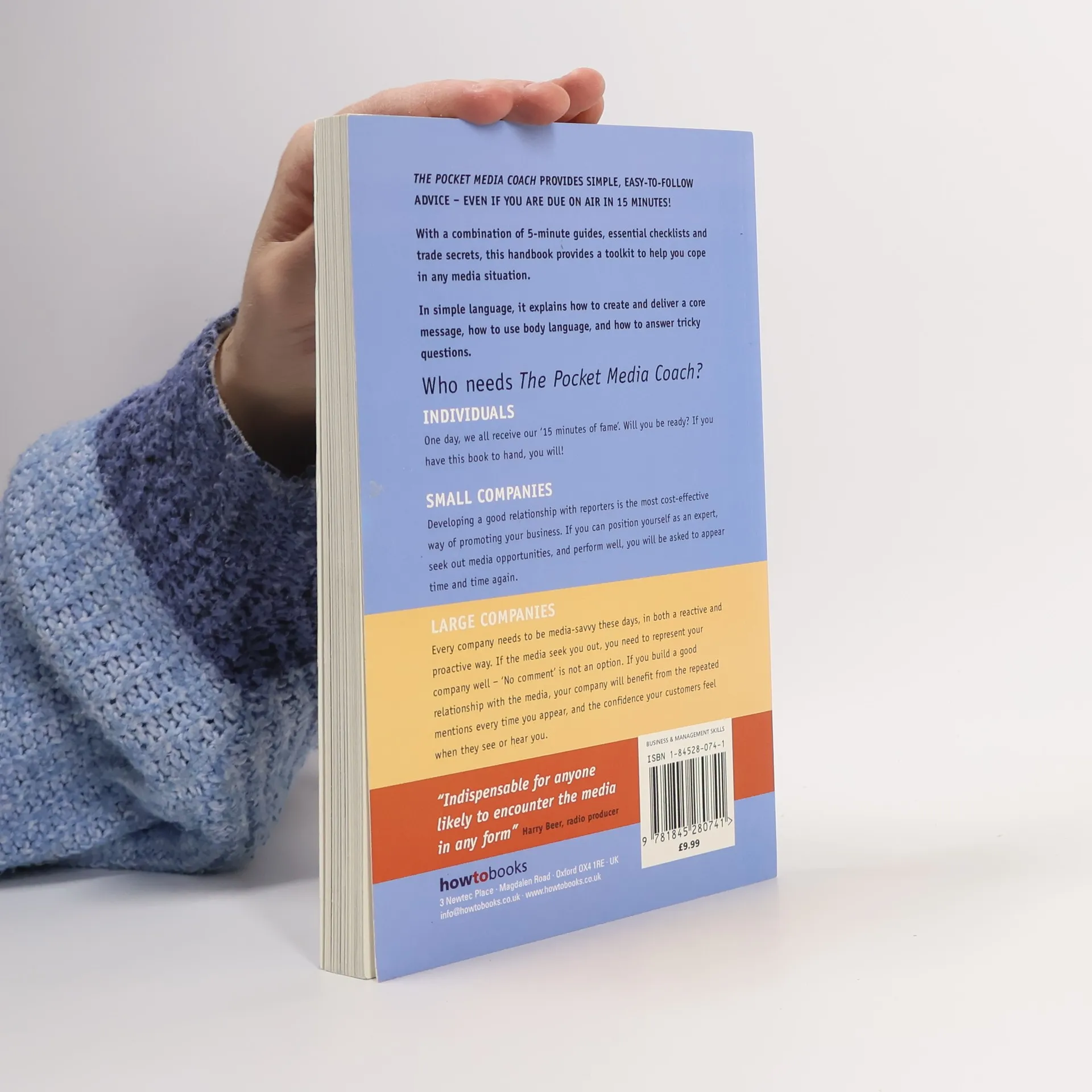 "The Pocket Media Coach" provides simple, easy-to-follow advice - even if you are due on air in 15 minutes! With a combination of 5-minute guides, essential check lists and trade secrets, this guide provides a toolkit to help you cope in any media situation. In simple language, it explains how to create and deliver a core message, how to use body language, and how to answer tricky questions. Who needs "The Pocket Media Coach"? Individuals - One day, we all receive our "15 minutes of fame". Will you be ready? If you have this book to hand, you will! Small Companies - Developing a good relationship with reporters is the most cost-effective way of promoting your business. If you can position yourself as an expert, seek out media opportunities, and perform well, you will be asked to appear time and time again. Large companies - Every company needs to be media-savvy these days, in both a reactive and proactive way. If the media seek you out, you need to represent your company well - "No comment" is not an option. If you build a good relationship with the media, your company will benefit from the repeated mentions every time you appear, and the confidence your customers feel when they see or hear you.