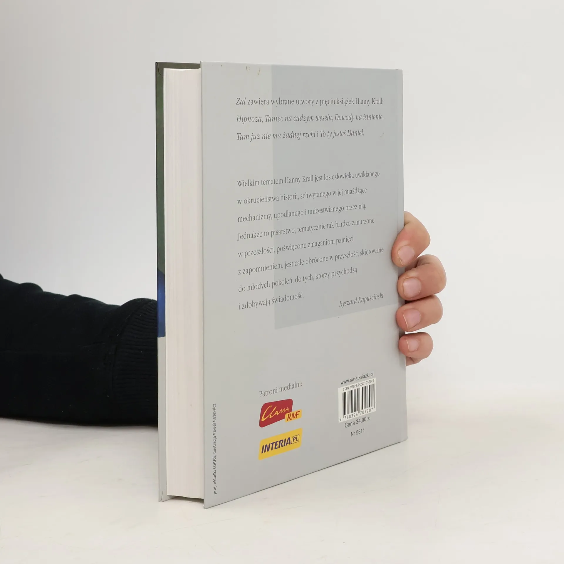 Wybrane utwory z pięciu głośnych książek Hanny Krall pierwszy raz wydane w jednym tomie: "Dowody na istnienie", "Taniec na cudzym weselu", "Tam już nie ma żadnej rzeki", "Hipnoza" i "To ty jestes Daniel". "Praca reporterki nauczyła mnie, że historie logiczne, bez zagadek i luk, w których wszystko jest zrozumiałe, bywają nieprawdziwe. A rzeczy, których nijak nie da się wytłumaczyć, zdarzają się naprawdę" - pisze słynna dziennikarka, opisując niewiarygodne przygody swoich bohaterów.