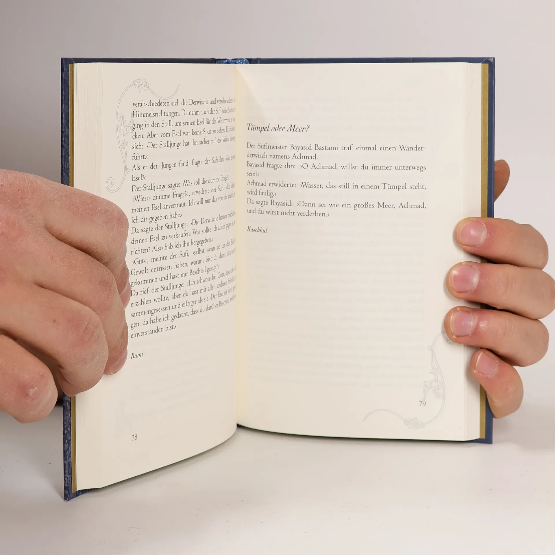 Eine Kaschkul ist die Bettelschale eines Wanderderwischs, "Kaschkul" ist aber auch der Titel einer Sammlung persischer Geschichten, die von Scheich Baha i im 16. Jahrhundert zusammengestellt wurde. Viele von ihnen sind der mündlichen Überlieferung entnommen, vergleichbar mit der Grimm schen Märchensammlung. Doch die Wurzeln der Märchen, Mythen und Legenden des in Persien überaus beliebten Kaschkul liegen so tief, dass sie uns auch über alle kulturellen Grenzen hinweg berühren. In ihrem Kern geht es um Freundschaft, Liebe, Macht und um die vielfältigen menschlichen Schwächen und Verfehlungen - reizvoll dargestellt in orientalischem Gewand. Die von Oufi gesammelten Legenden sind ein faszinie-rendes Spiegelbild der Sitten und Gebräuche im Orient des 13. Jahrhunderts. Der Hang zur Mystik, welcher der persischen Kultur eigen und in fast alle Geschichten eingewoben ist, tritt am deutlichsten bei Rumi hervor.