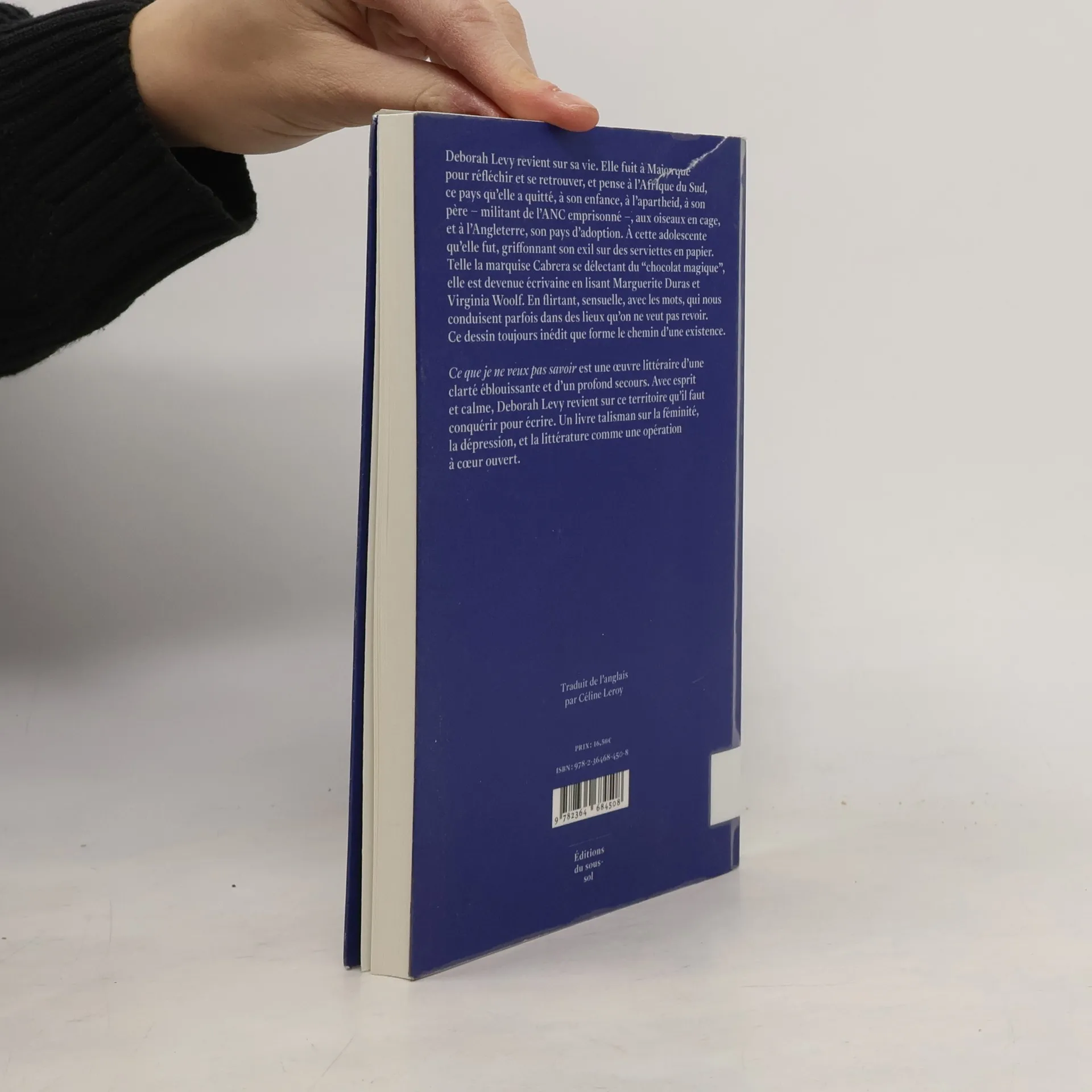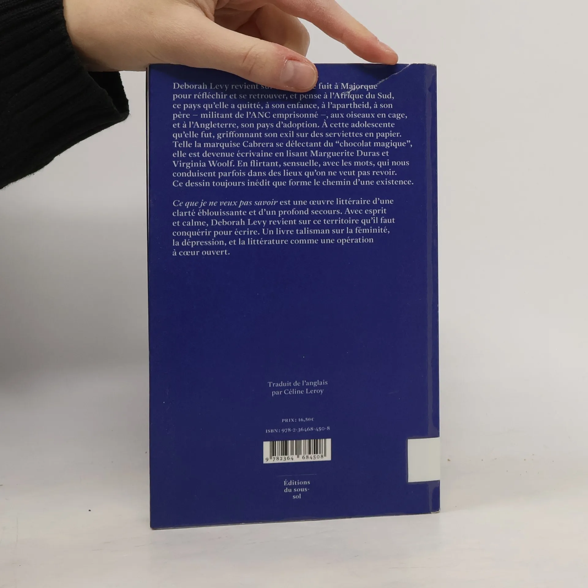 Deborah Levy revient sur sa vie. Elle fuit à Majorque pour réfléchir et se retrouver, et pense à l'Afrique du Sud, ce pays qu'elle a quitté, à son enfance, à l'apartheid, à son père – militant de l'ANC emprisonné –, aux oiseaux en cage, et à l'Angleterre, son pays d'adoption. À cette adolescente qu'elle fut, griffonnant son exil sur des serviettes en papier. Telle la marquise Cabrera se délectant du "chocolat magique', elle est devenue écrivaine en lisant Marguerite Duras et Virginia Woolf. En flirtant, sensuelle, avec les mots, qui nous conduisent parfois dans des lieux qu'on ne veut pas revoir. Ce dessin toujours inédit que forme le chemin d'une existence. Ce que je ne veux pas savoir est une œuvre littéraire d'une clarté éblouissante et d'un profond secours. Avec esprit et calme, Deborah Levy revient sur ce territoire qu'il faut conquérir pour écrire. Un livre talisman sur la féminité, la dépression, et la littérature comme une opération à cœur ouvert.