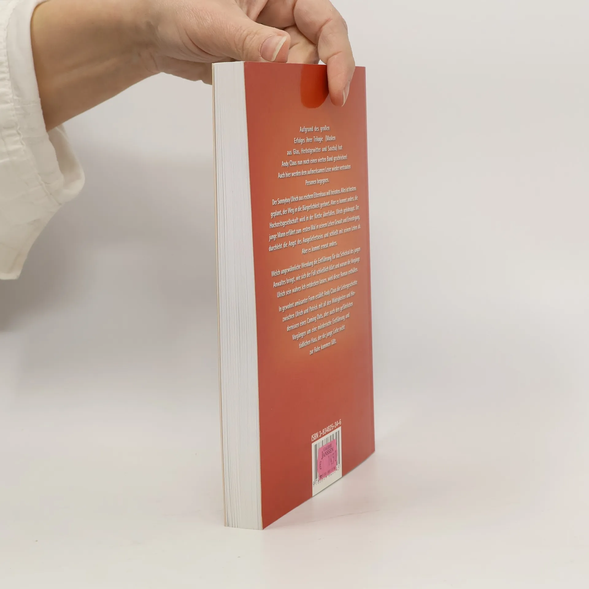 Nach dem großen Erfolg ihrer Trilogie 'Masken aus Glas', 'Herbstgewitter' und 'Sascha' gibt es nun den vierten Roman von Andy Claus. Die Handlung führt den Leser wieder nach Köln und wer bereits die Trilogie kennt, wird sich in der Stadt am Rhein heimisch fühlen und vertrauten Personen begegnen.Der junge Anwalt Ulrich von Eichendorff stammt aus reichem Elternhaus und führt ein exzessives Leben, um sich vor seinem dominanten Vater als richtiger Mann zu beweisen. Auf Drängen seiner langjährigen Freundin gibt er seinen unsteten Lebenswandel auf, die Hochzeit ist geplant und somit sind scheinbar alle Wege in ein bürgerliches Leben geebnet. Aber während der Trauung kommt es zu einer Tragödie - maskierte Männer richten in der Kirche ein Blutbad an und entführen den millionenschweren Bräutigam. Ulrich erfährt zum ersten Mal in seinem Leben Gewalt und Erniedrigung, durchlebt die Angst des Ausgeliefertseins und schliesst mit seinem Leben ab. Doch es gibt jemanden, der für Ulrich sein eigenes Leben aufs Spiel setzt.Die Entführung bringt eine ungewöhnliche Wendung für das Schicksal des jungen Anwaltes, er entdeckt sein wahres Ich. In gewohnt amüsanter Form erzählt Andy Claus einfühlsam die Liebesgeschichte von Ulrich und Patrick mit all den Widrigkeiten und Hindernissen eines Coming Outs. Doch gefährliche Vorgänge um die mörderische Entführung und tödlicher Hass lassen die junge Liebe nicht zur Ruhe kommen.