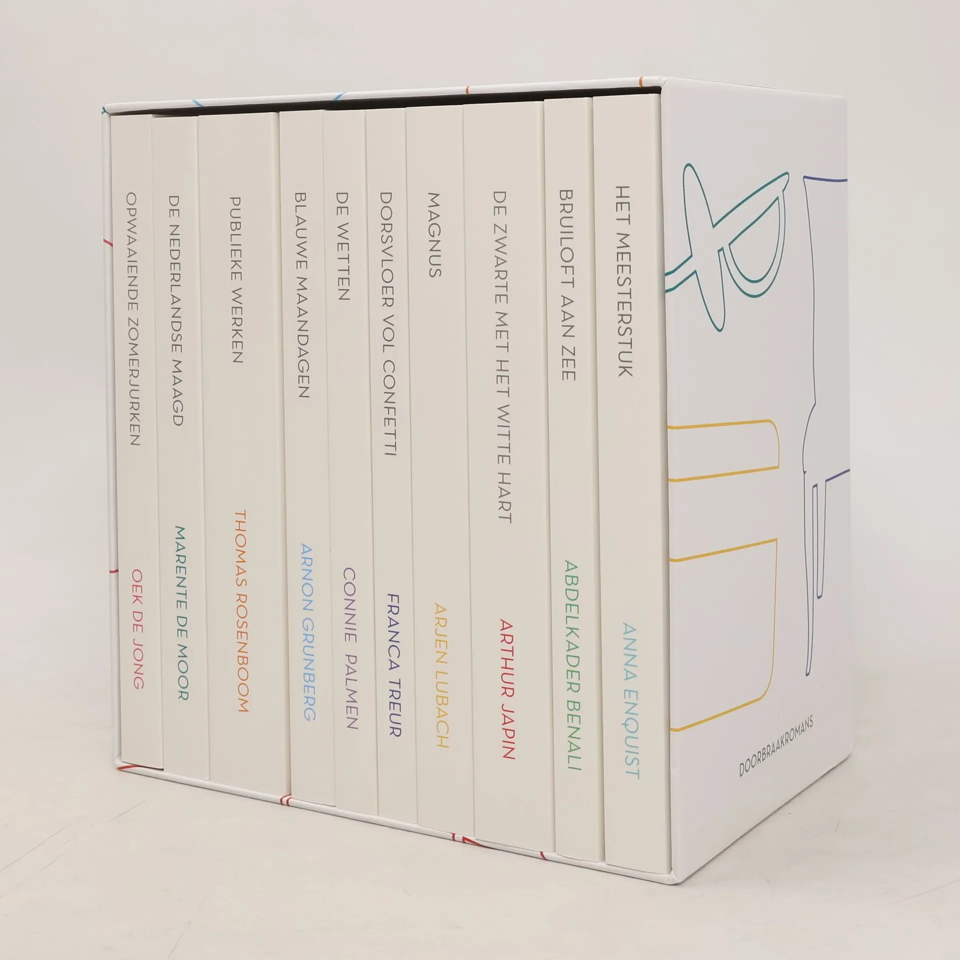Doorbraakromans 1-10, Thomas Rosenboom, Oek de Jong, Arthur Japin, Connie Palmen, Arnon Grunberg, Marente de Moor, Arjen Lubach, Franca Treur, Abdelkader Benali, Anna Enquist