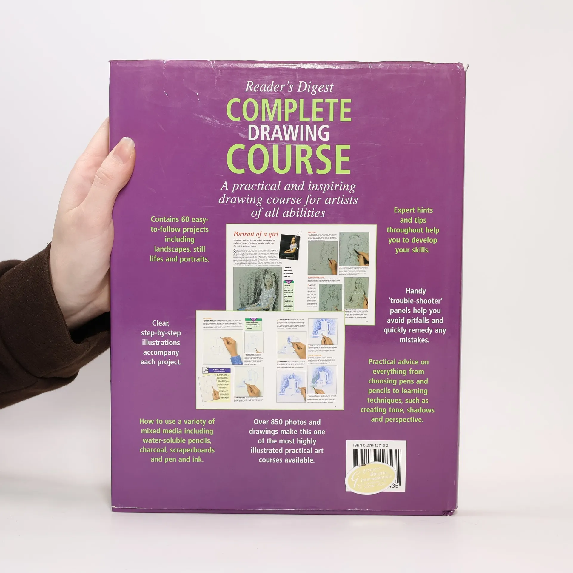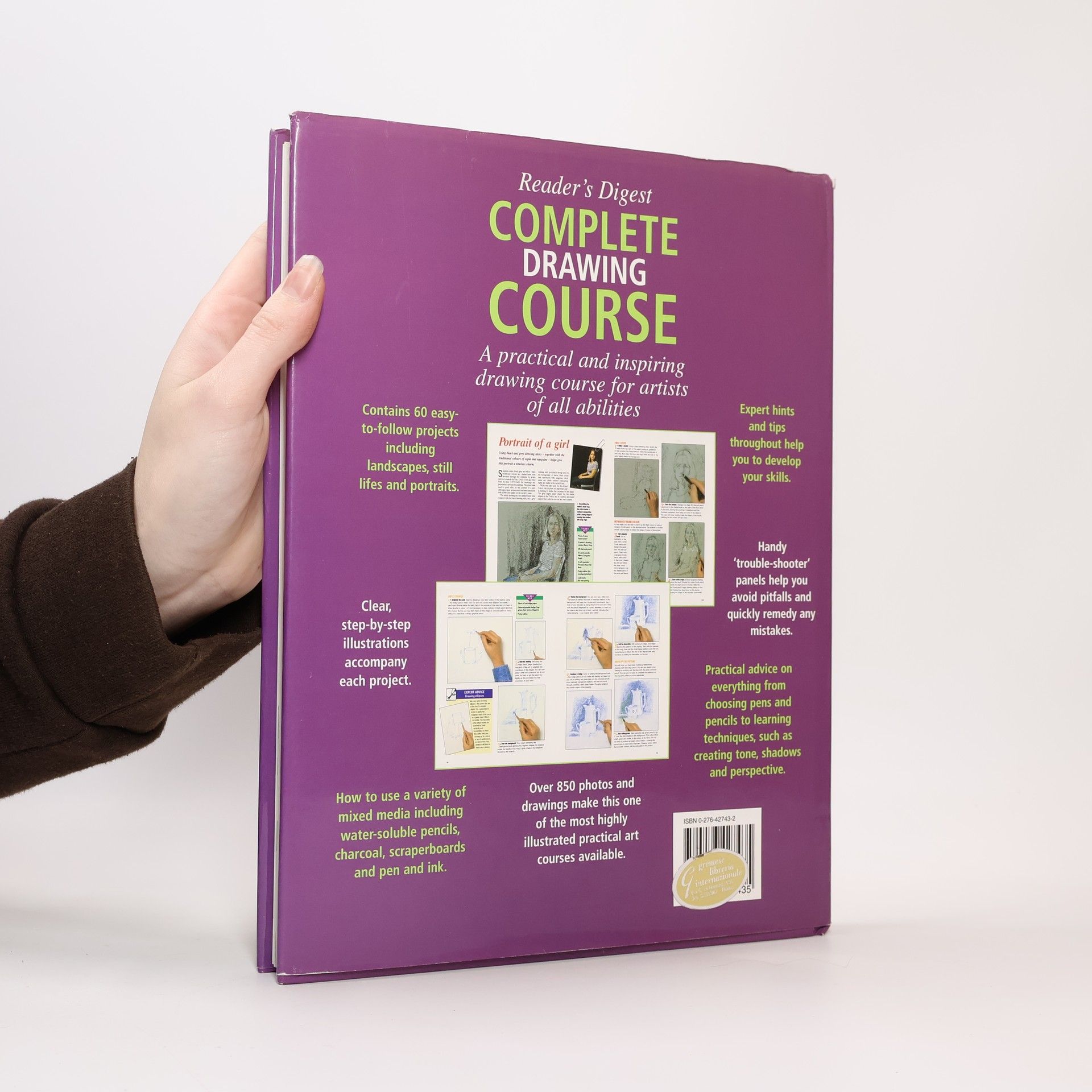 Learn how to "draw what you see" with the Reader's Digest Complete Drawing Course. This book demonstrates how to study a subject and then interpret that image onto paper. You don't have to be a born artist; drawing is a skill that can be learned just like any other, and with its emphasis on practical projects and clear instructions, this book contains everything you need in order to learn to draw successfully, using a variety of media. Included are exercises in studying and drawing specific subjects such as parts of the body, trees, animals and street scenes. The step-by-step format of the course means that each project is broken down into easy-to-follow stages. Clear photographs show exactly how the artist is progressing, while the accompanying text explains in familiar terms how each step is achieved. Each project shows the finished picture, marked with points of note for the artist, explaining how certain effects were achieved, with Expert Advice boxes in each project explain particular techniques you will need to use to complete the exercise and Trouble Shooter boxes help you to quickly amend your mistakes if you go wrong.