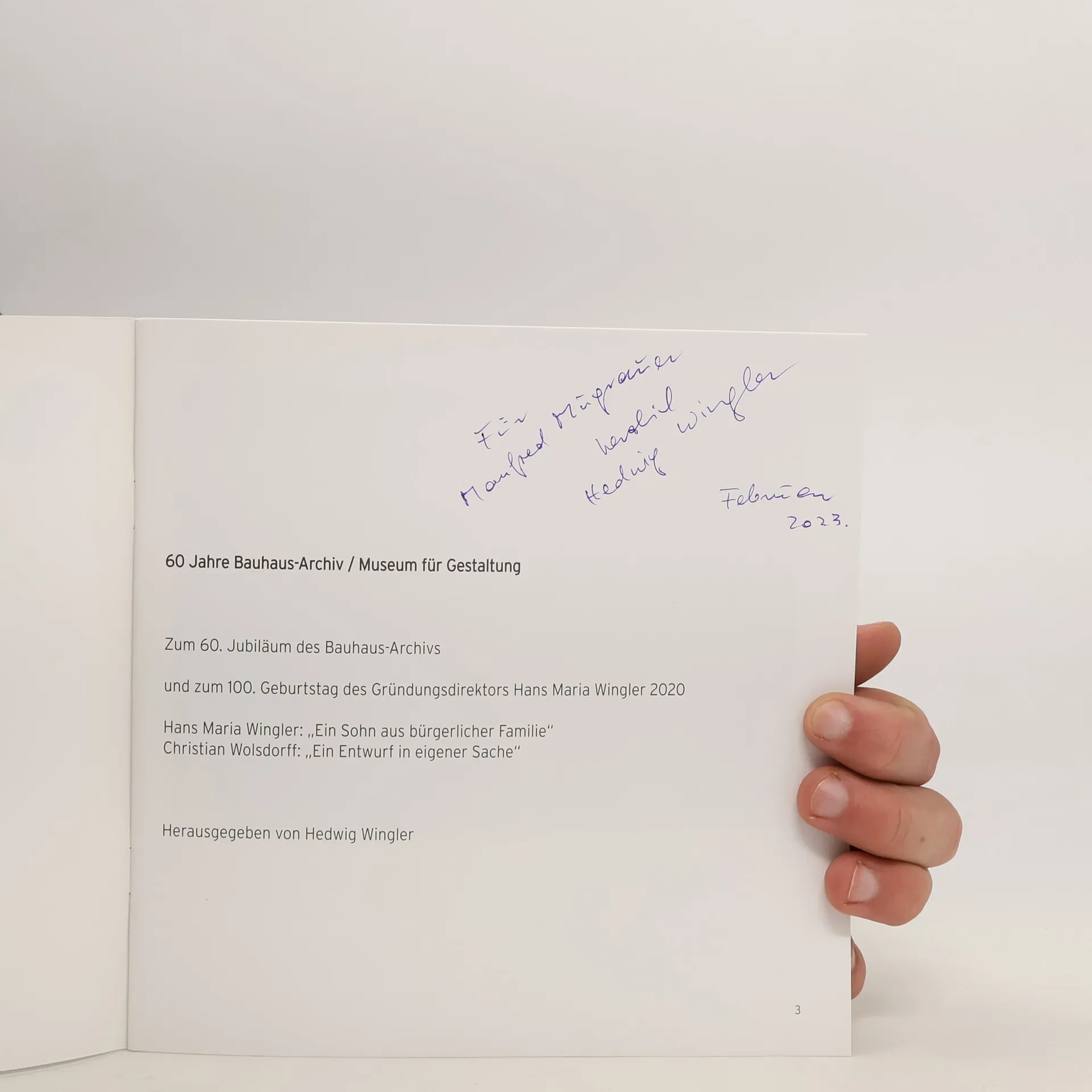 1955 lernte Hans Maria Wingler bei der Eröffnung der Hochschule für Gestaltung Ulm Walter Gropius kennen. Gemeinsam vernetzten sie sich mit ehemaligen Studierenden des Bauhauses, die in der NS-Zeit emigrierten oder flohen. 1960 gründete Wingler das Bauhaus-Archiv, an dem die bis heute weltgrößte Sammlung zum Thema Bauhaus archiviert und erforscht wird. Das Buch mit Texten von Hans Maria Wingler und Christian Wolsdorff erscheint anlässlich des 60. Jubiläums des Bauhaus-Archivs sowie des 100. Gründungsjubiläum des Bauhauses.