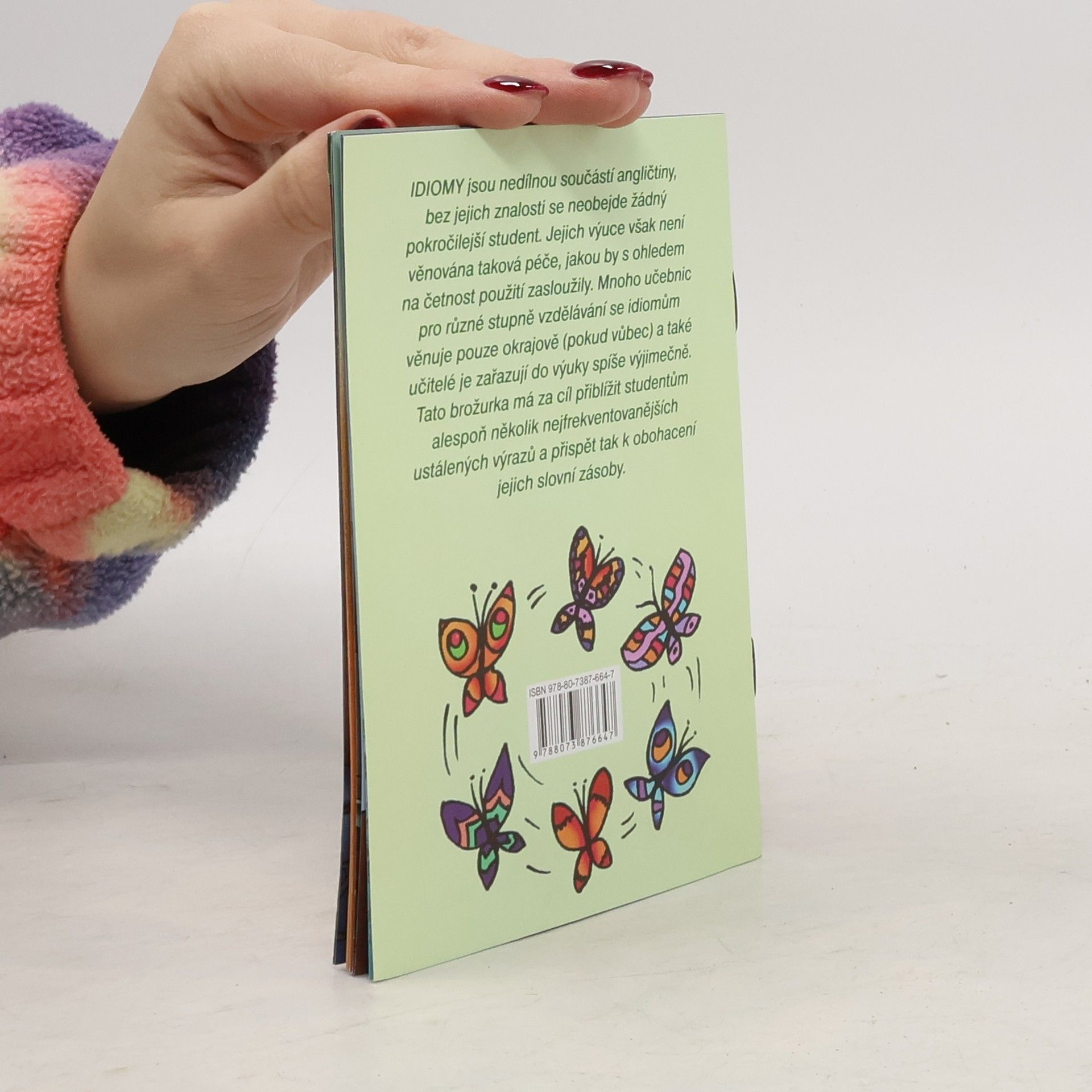 Idiomy jsou nedílnou součástí angličtiny, bez jejich znalosti se neobjede žádný pokročilejší student. Jejich výuce však není věnována taková péče, jakou by s ohledem na četnost použití zasloužily. Mnoho učebnic pro různé stupně vzdělávání se idiomům věnuje pouze okrajově (pokud vůbec) a také učitelé je zařazují do výuky spíše výjimečně. Tato brožurka má za cíl přiblížit studentům alespoň několik nejfrekventovanějších ustálených výrazů a přispět tak k obohacení jejich slovní zásoby.