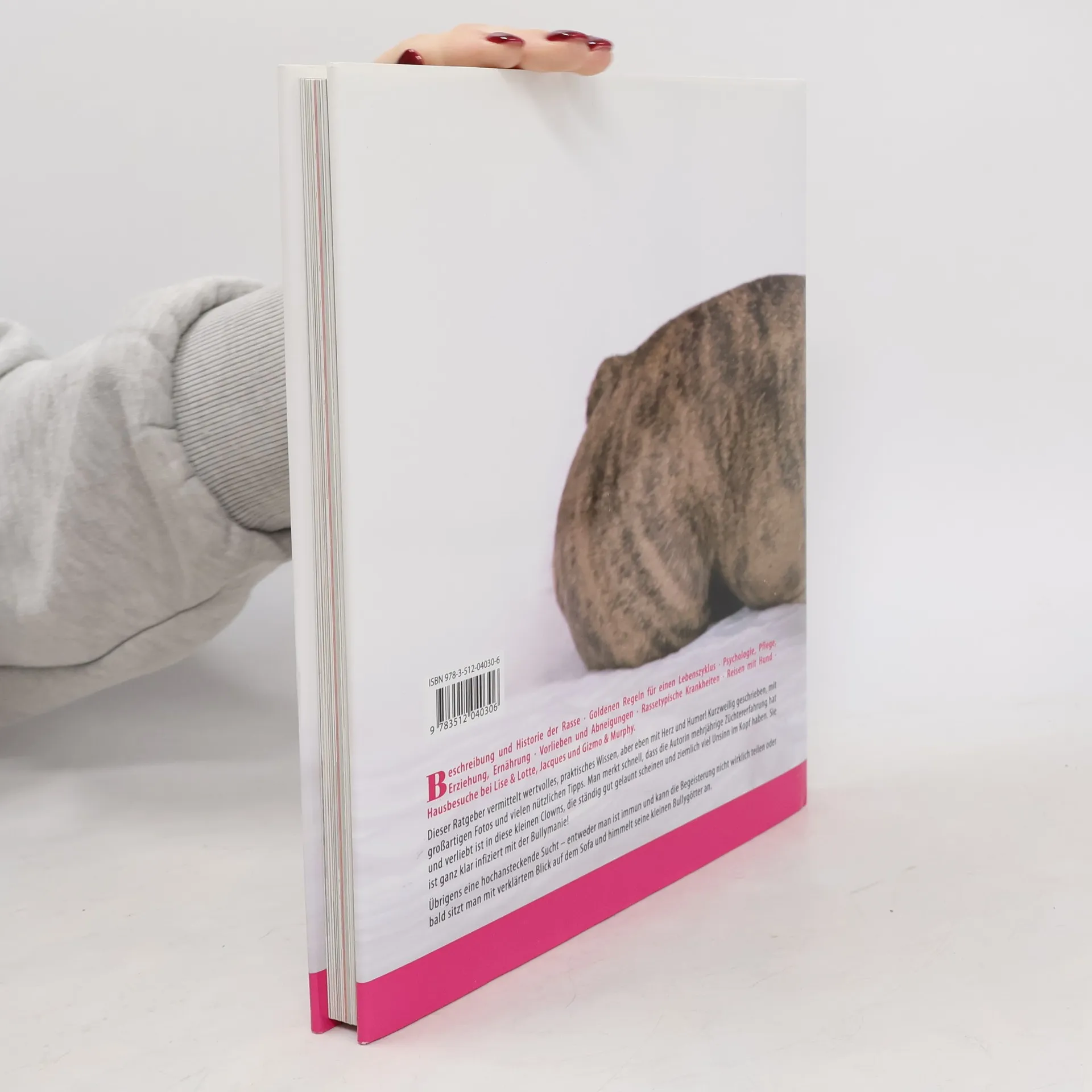 Beschreibung und Historie der Rasse-Die 20 goldenen Regeln für einen Lebenszyklus-Psychologie, Pflege, Ausbildung, Ernährung-Vorlieben und Abneigungen-Rassetypische Krankheiten-Reisen mit Hund-Hausbesuche: So wohnen Bullys Dieser Ratgeber vermittelt praktisches Wissen, aber eben mit Herz und Humor! Kurzweilig geschrieben, mit großartigen Fotos und vielen nützlichen Tipps. Man merkt schnell, dass die Autorin verliebt ist in diese kleinen Clowns, die ständig gut gelaunt scheinen und ziemlich viel Unsinn im Kopf haben. Sie ist ganz klar infiziert mit der Bullymanie! Übrigens eine hochansteckende Sucht - entweder man ist immun und kann die Begeisterung nicht wirklich teilen oder bald sitzt man mit verklärtem Blick auf dem Sofa und himmelt eine kleinen Bullygötter an.