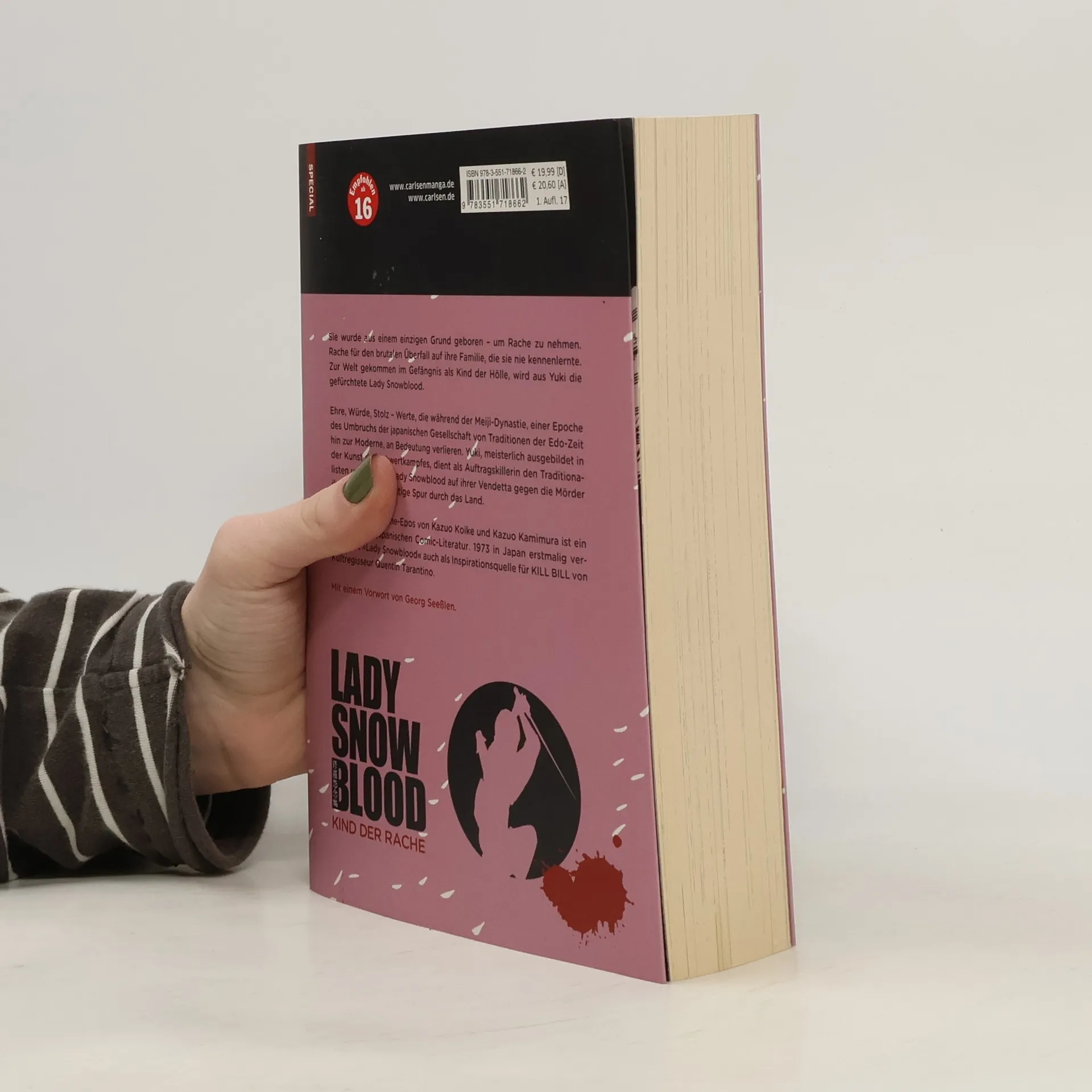 Sie wurde aus einem einzigen Grund geboren: um Rache zu nehmen. Rache für den brutalen Überfall auf ihre Familie, die sie nie kennen lernte. Zur Welt gekommen im Gefängnis als Kind der Hölle, wird aus Yuki die gefürchtete Lady Snowblood. Meisterlich ausgebildet in der Kunst des Schwertkampfes, dient sie den Traditionalisten als Auftragskillerin und zieht auf ihrer Vendetta gegen die Mörder ihrer Familie eine blutige Spur durch das Land. Das packende Rache-Epos des preisgekrönten Autors Kazuo Koike - umgesetzt in atmosphärisch dichte, elegante Bilder von Kazuo Kamimura - wurde 1973 in Japan erstmalig verfilmt (dt. DVDs bei Rapid Eye Movies) und gilt als Hauptinspirationsquelle für KILL BILL von Kultregisseur Quentin Tarantino. Die dreibändige Neuedition dieses vergriffenen Seinen-Manga-Klassikers erscheint in größeren Format und mit neuer Covergestaltung - in einmaliger Auflage auch als Komplett-Paket, mit einem Triptychon als Regal-Dekoration!