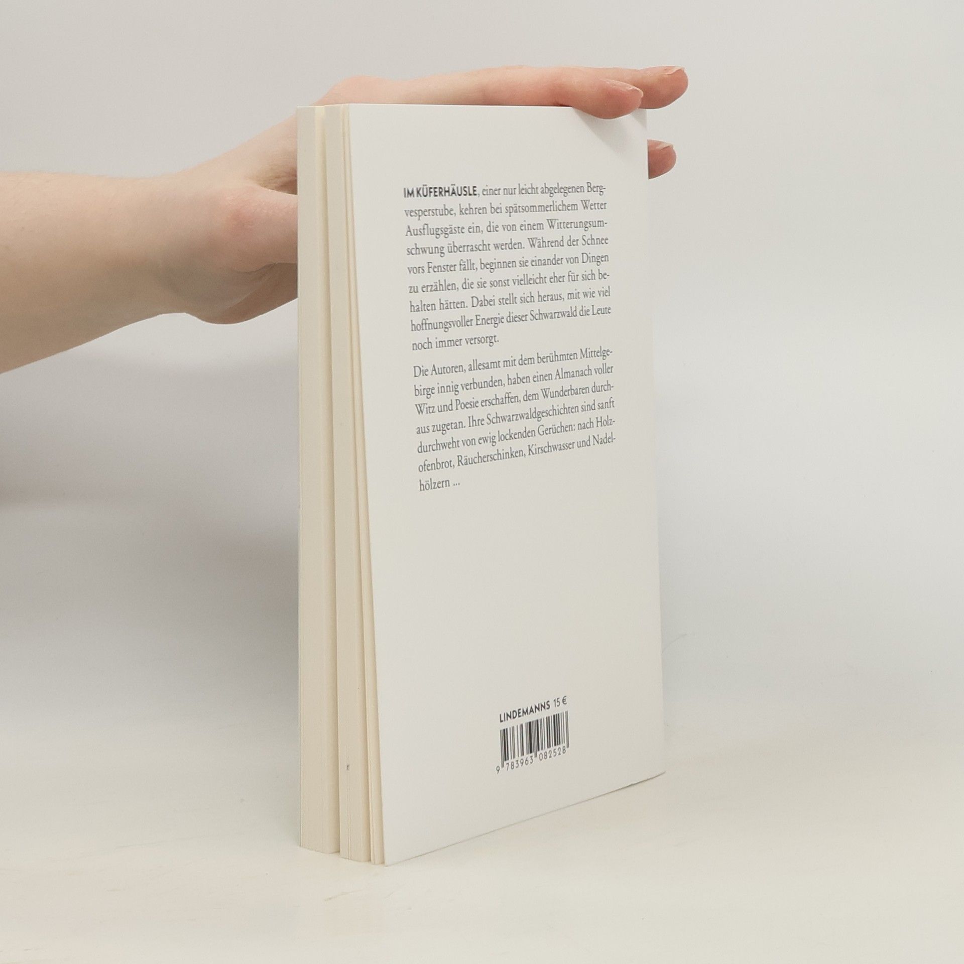 Im Küferhäusle, einer nur leicht abgelegenen Bergvesperstube, kehren bei spätsommerlichem Wetter Ausflugsgäste ein, die von einem Witterungsumschwung überrascht werden. Während der Schnee vors Fenster fällt, beginnen sie einander von Dingen zu erzählen, die sie sonst vielleicht eher für sich behalten hätten. Dabei stellt sich heraus, mit wie viel hoffnungsvoller Energie dieser Schwarzwald die Leute noch immer versorgt. Die Autoren, allesamt mit dem berühmten Mittelgebirge innig verbunden, haben einen Almanach voller Witz und Poesie erschaffen, dem Wunderbaren durchaus zugetan. Ihre Schwarzwaldgeschichten sind sanft durchweht von ewig lockenden Gerüchen: nach Holzofenbrot, Räucherschinken, Kirschwasser und Nadelhölzern ...