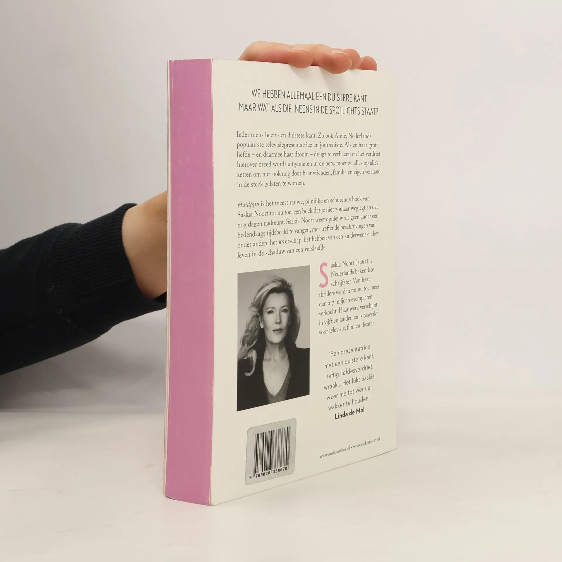 'Huidpijn' is het meest rauwe, pijnlijke en schurende boek van Saskia Noort tot nu toe, een boek dat je niet zomaar weglegt en dat nog dagen nadreunt. Saskia Noort weet opnieuw als geen ander een hedendaags tijdbeeld te vangen, met treffende beschrijvingen van onder andere het BN'erschap, het hebben van een kinderwens en het leven in de schaduw van een verslaafde. Ieder mens heeft een duistere kant. Zo ook Anne, Nederlands populairste televisiepresentatrice en journaliste. Als ze haar grote liefde en daarmee haar droom dreigt te verliezen, en het verdriet hierover breed wordt uitgemeten in de pers, moet ze alles op alles zetten om niet ook nog door haar vrienden, familie en eigen verstand in de steek gelaten te worden.
