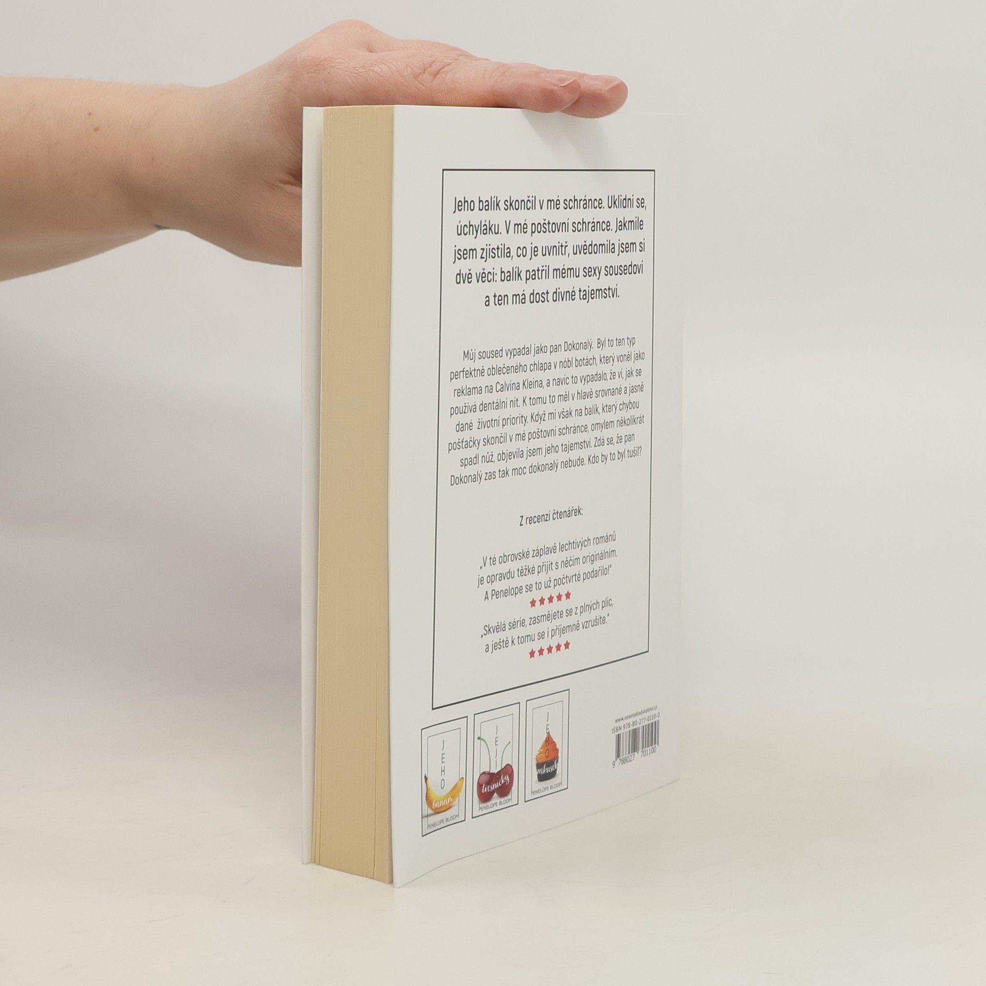 Jeho balík skončil v mé schránce. Uklidni se, úchyláku. V mé poštovní schránce. Jakmile jsem zjistila, co je uvnitř, uvědomila jsem si dvě věci: Patřil mému sexy sousedovi a ten měl temné tajemství. Většinou jsem se řadila mezi milovníky koček. V tom smyslu, že bych upřednostnila kočku v devíti z deseti případů. Nebylo to proto, že bych je měla nějak extra ráda, jen jsem neměla extra ráda většinu lidí. Můj soused mezi většinu lidí nepatřil. Žil v bytě naproti mně a byl to ten typ perfektně oblečeného chlapa v nóbl botách, který voněl jako reklama na Calvina Kleina a navíc to vypadalo, že ví, jak se používá dentální nit. Ale k věci, tenhle chlap měl očividně svůj život pečlivě uspořádaný. Byl to pan Dokonalý, ale co se mě týká, potřeboval by trochu srazit hřebínek. A jako na zavolanou jeho dlouhý, tlustý balík pronikl do mé malé, úzké poštovní schránky. Vím. Naprosto nechutné. Evidentně to byl trik, jak po mně vyjet. Pomineme-li fakt, že ho tam dala pošťačka, věděla jsem, co hraje můj soused za hru. Ano, naprosto přesně jsem to věděla. Tak jdeme do toho. Nebo spíš na to, pokud chcete. Omylem mi v bytě na balík několikrát spadl nůž. Prakticky se sám otevřel a já neměla na výběr, než se do něj podívat. Z balíku na mě koukalo jeho malé tajemství. Jak se ukázalo, pan Dokonalý nakonec nebyl tak dokonalý. Kdo by to byl tušil? Nápověda: Já ano. Ale naprosto jsem si hodlala užít každou vteřinu toho, co mělo přijít.